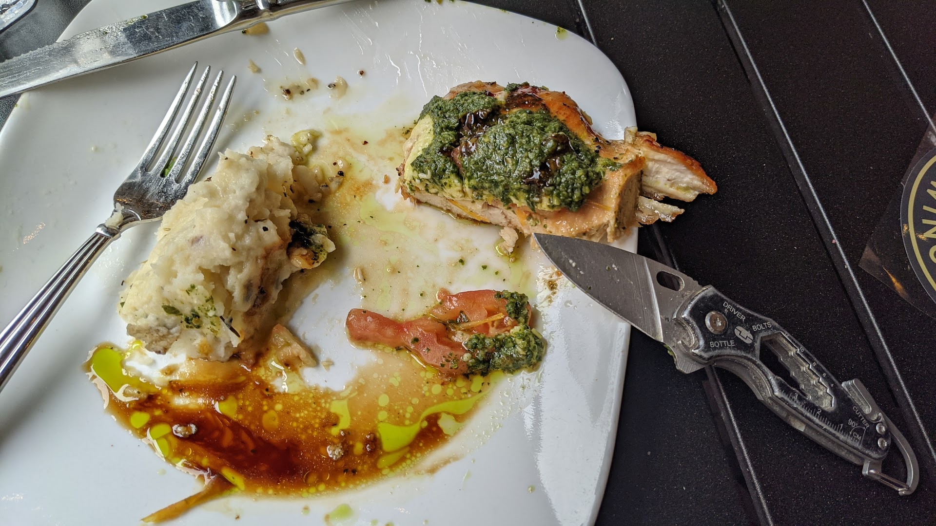 Speaking of my meal, while flavored well, I was happy to have my pocket knife with me to be able to cut the chicken into bite sized pieces.
