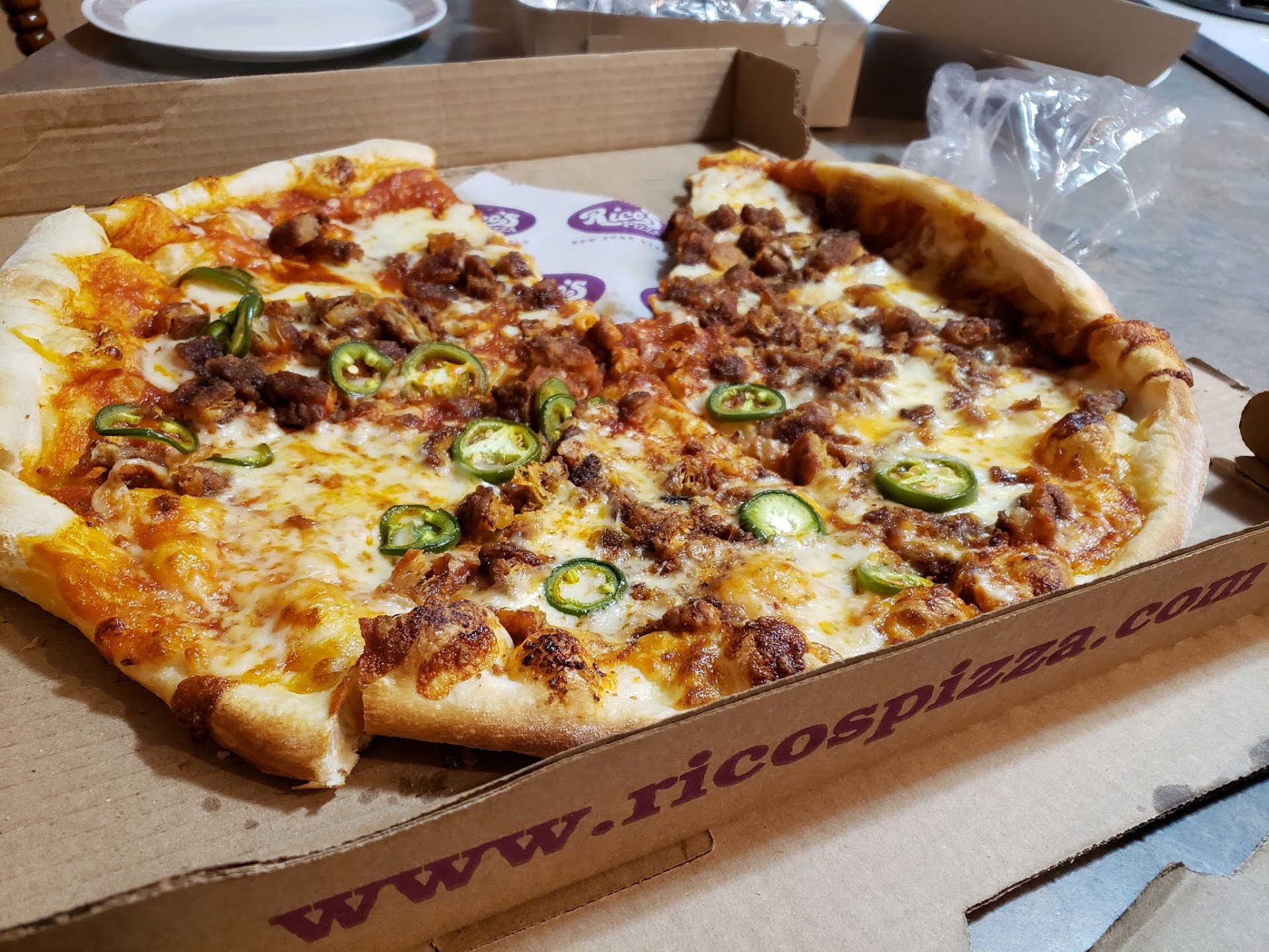 A quick stop in Corning meant we were in need for a quick bite to eat. Because we had yet to have any New York style pizza on this trip, I recommended we hit one up for our last meal while in New York. Sure, there are a lot of spots that come up when you do a Google search but Rico's Pizza looked the most promising out of the area we were in.