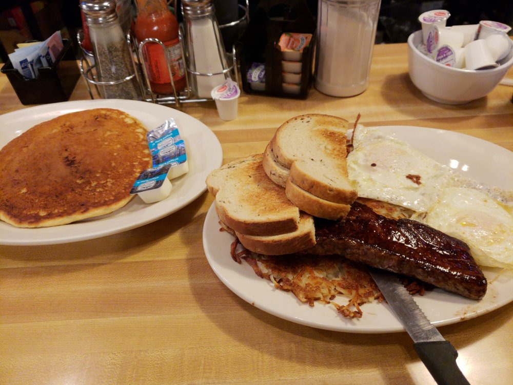 Read moreWhen we arrived around 11:30 it was almost full. They are so good that we sat down and had drinks within a few minutes from a friendly and efficient waitress. We ordered a lot of food between the four of us... he got biscuits and gravy and eggs and toast and more and his gravy was so flavorful it almost made me want to order some and I am not a biscuit and gravy person. My kiddo got - kids meal with an extra side- she had 1 pancake, 1 piece of French toast, bacon and hash browns... she is a picky eater and rarely finishes and I believe she finished everything except her meat which has since been eaten :)... our friend got the stuffed French toast meal and loved it a lot!.. we all tried each others and everyone loved everything...