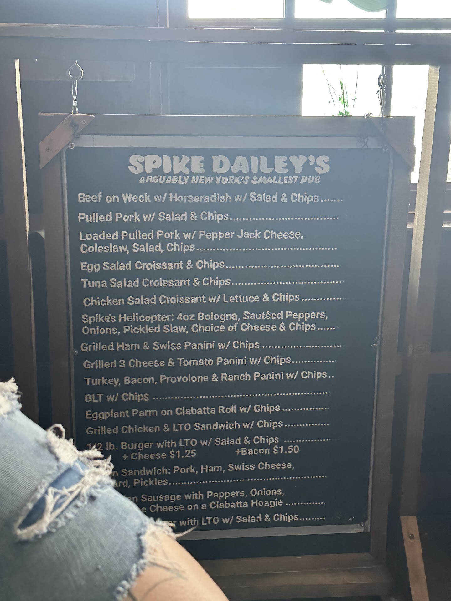 Read moreIn town for a weekend getaway at our cottage and wanted to eat by the Lake. Spike’s is a teeny tiny hidden gem, I can’t believe we have never been here?!? The bartender was friendly and attentive, my drink was fabulous. When I told her how great it was she was so gracious and said it was only her second day. The food was amazing!! I had a loaded pulled pork, subbed for Swiss cheese and a Gluten Free bun. I am so appreciative they carry GF buns, my sandwich was delicious, pork was steaming hot the way I like it. My fiancé had the helicopter and said it was excellent! 2 drinks and 2 meals for $50, heck yeah!! We will be be back next time we are in town!! Thanks for a...
