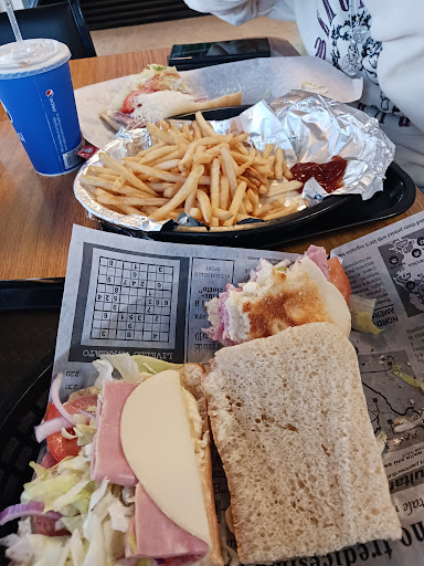 I don't like trying new places and this is the whole reason. I was in the mood for a sub aka hoagie and fully loaded with lettuce meat cheese tomatoes and plenty of raw onions. I thought that being these were $10.15 each they must be huge or filled with meat. I ordered one of the Italian with provolone and EXTRA HEAVY LETTUCE AND ONIONS with mayo and tomatoes. I asked about how long they were and got a funny look. They were NOT SUB ROLLS OR HOAGIE ROLLS. They were more like Portuguese rolls made of Italian bread and sliced fully through. The sandwich I got had 3 slices of meat per 4 inch half. I was at least expecting something competitive with Southside Subs were the meat is heavy. As my picture show the lettuce and onions are almost up to the normal amount of a standard sandwich not a sub. The toppings are extremely limited and small. 1 bottle of water will set you back $2.50 and teas $3.50 in the cooler. $3 per 16 oz fountain soda. The fries were huge but not special or tasty.