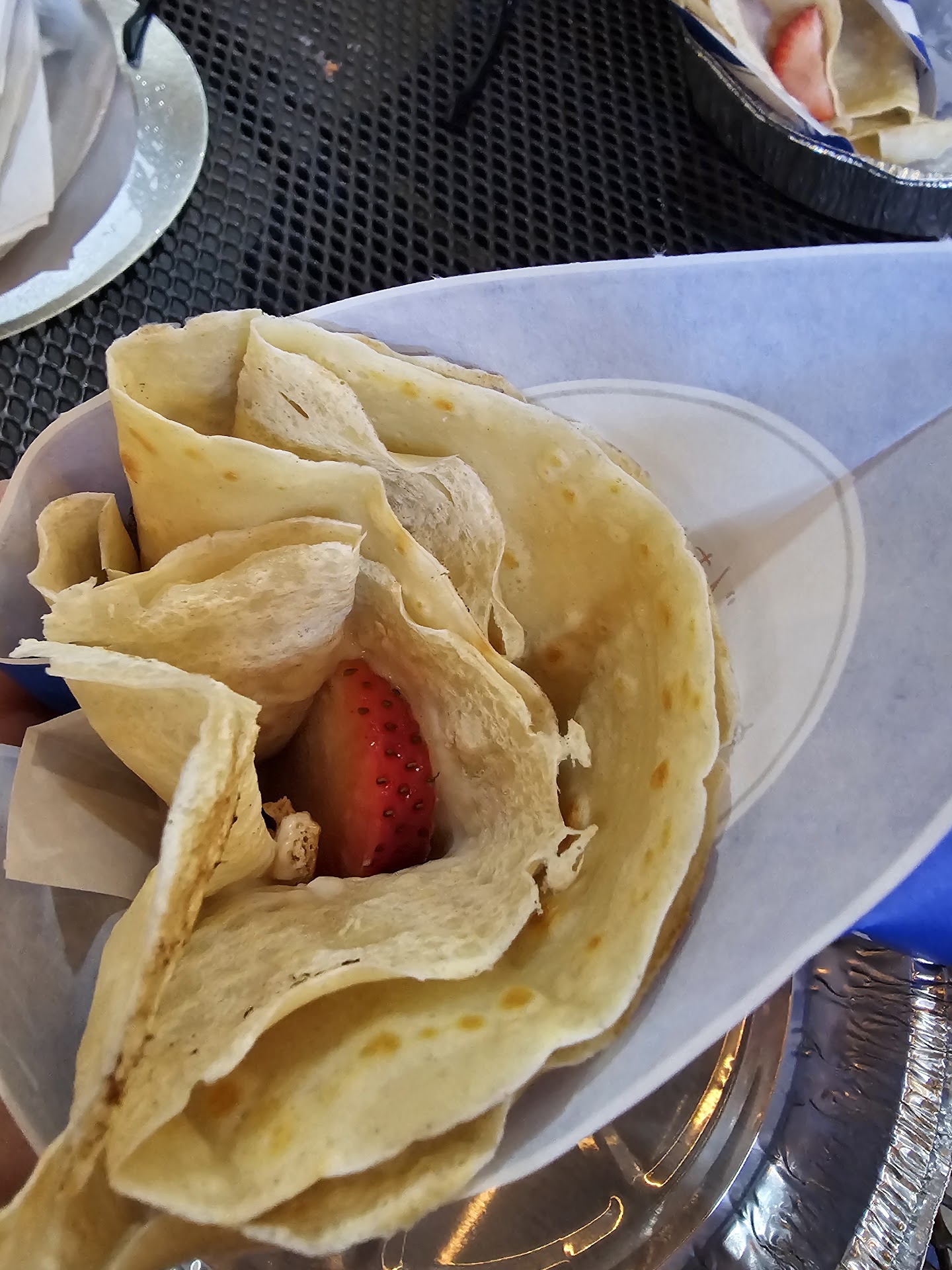 As for the crepes—hot, yes. Tasty? Sure. But crispy. Crispy. That’s not how a crepe should feel, unless someone confused it with a quesadilla. At that point, I wasn’t about to wait another 15 minutes to get it redone.