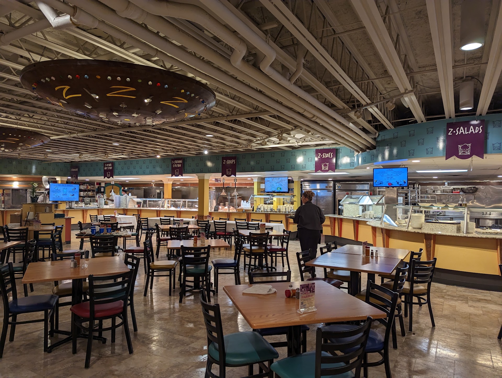 Read moreOn 12-20-2017 my sister and I went to cafe for sandwiches which we were getting to go at around 8 pm we saw large sign overhead reading order sandwiches here we couldn't see anyone working there so we went to buffet area to order we attempted to place our order with her and were told that there were people ahead of we apologized saying we didn't mean to cut the line at this time we were made to wait a very extended length of time standing at counter waiting to order then the same woman who told us to wait behind others at buffet now told us we had to order at area where we initially waiting she then was trying to get other staff members to make them again we were left standing unattended another female came up we attempted to give her our order she told us she doesn't know how to make sandwiches she walked away leaving us again asking a male employee to make them he did but when they were done and he still had bags behind counter he began this long conversation with other male staff member about their personal life until I went to counter to get sandwiches it is no exaggeration to say that we waited 40 minutes for meal at this time the original staff member was noted continually popping bacon into her mouth and drinking a beverage without washing hands or wearing gloves while...