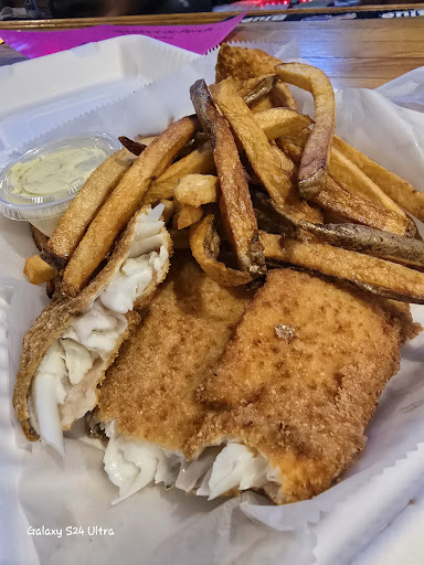 Read moreMy fish dinner hung off the plate and was perfectly cooked. Fish was thick and not just a flat piece as most places serve it. Home-made onion rings were delicious. Fries were questionable but a good amount was served. Waitress was very friendly. Didn't mind the dogs because after all, my dog is usually laying in my kitchen when I...