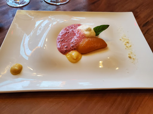 The duck dish was STRANGE. It was a very long, floppy, poorly cut piece of duck that looked like it was sous vide prepared. My wife saw the chef remove the breast from the sous vide and then cut them and serve them. No pan sear for the fat side so by the time it was served, it was like warm and that delicious duck fat was chewy instead of crispy. Also, as my wife pointed out, the chef had a very difficult time cutting the duck which was embarrassing in itself for him. The greens the served the breast over were so unfitting for this dish. Half of my greens were just mint leaves. Disjointed, unrelated “salad” to the floppy duck breast that was served.
