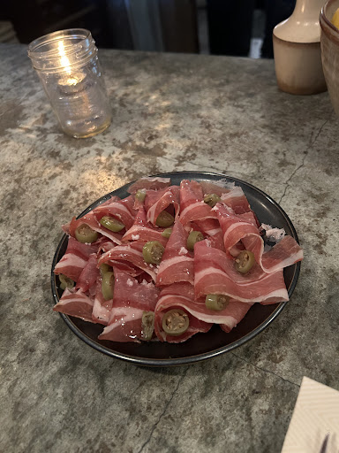 Read moreMicroclimate is a must-go in Geneva! We were able to walk in 2 people with no reservations, and we sat at the bar. The atmosphere was hip and chill. They had a really cool selection of unique food and drinks - it was hard to choose! I got a glass of local Cab Sauv, and my partner and I split the Spalla, Zucchini Salad, and the Deep Fried Quail. The spalla was like a less fatty prosciutto - not quite as flavorful, but nice texture. The zucchini salad was a really fun blend of flavors - a nice crunchiness from the almonds, a zestyness from the gochujang romanesco sauce, and a savoriness from the Bulgarian feta. The decided favorite though was the deep fried quail, with its perfect outer crust and...