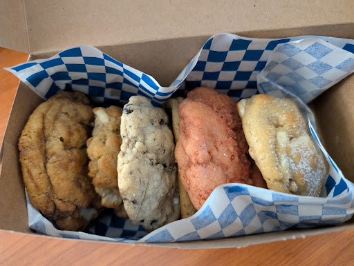 We saw this place on Google when we looked up bakeries near us, and we decided to give it a go. Pulling up it doesn’t look like much, but can I tell you, the decore is irrelevant the minute you taste these cookies. We were greeted by one of the owners when we walked in and he gave us a rundown of each available flavor. They all sounded amazing so we got one of each. Firstly these cookies look like Crumbl Cookies, but are actually delicious instead of disappointing. They are heavy and dense and sooo good. Some were fresh out of the oven and still warm. We sat down and shared pieces of each cookie, and the owners, (husband and wife and high school sweethearts!), were so friendly. They gave us free apples! And they told us how they got started only 6 months ago, and their hopes for the place. They make the cookies and fillings for their cookies by hand in house. Truly friendly, kind and talented people. We can’t wait to go back and see how they are growing and of course get more cookies. Definitely worth a stop in if you are nearby! Check out these pics and also my friend’s amazing nails (they are all natural if you can...