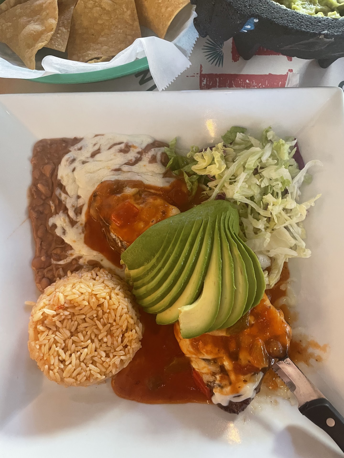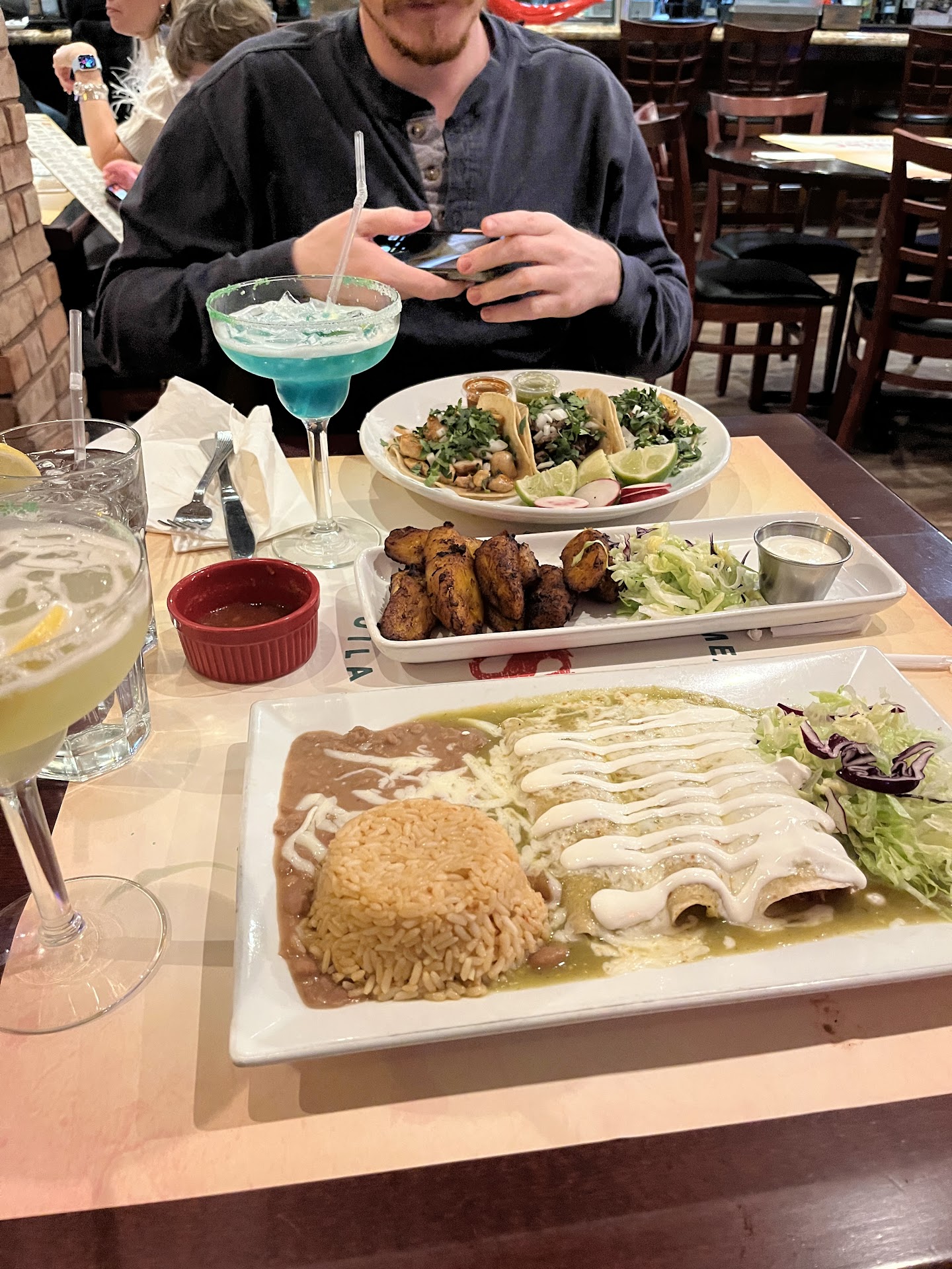Please Ignore the staple tacoes (pls)/quesadillas/chimichangas/enchiladas and try these: Home made Guacamole (SO creamy and delicious) Carne Ranchera (Avoid eating the spicy green peppers but this steak dish was absolutely necessary. We brought just the sauce home . Plantain Cheese Empanada (One of a kind, addicting side dish) Churros (Fresh, Filled with custard or something, and came with icecream?)