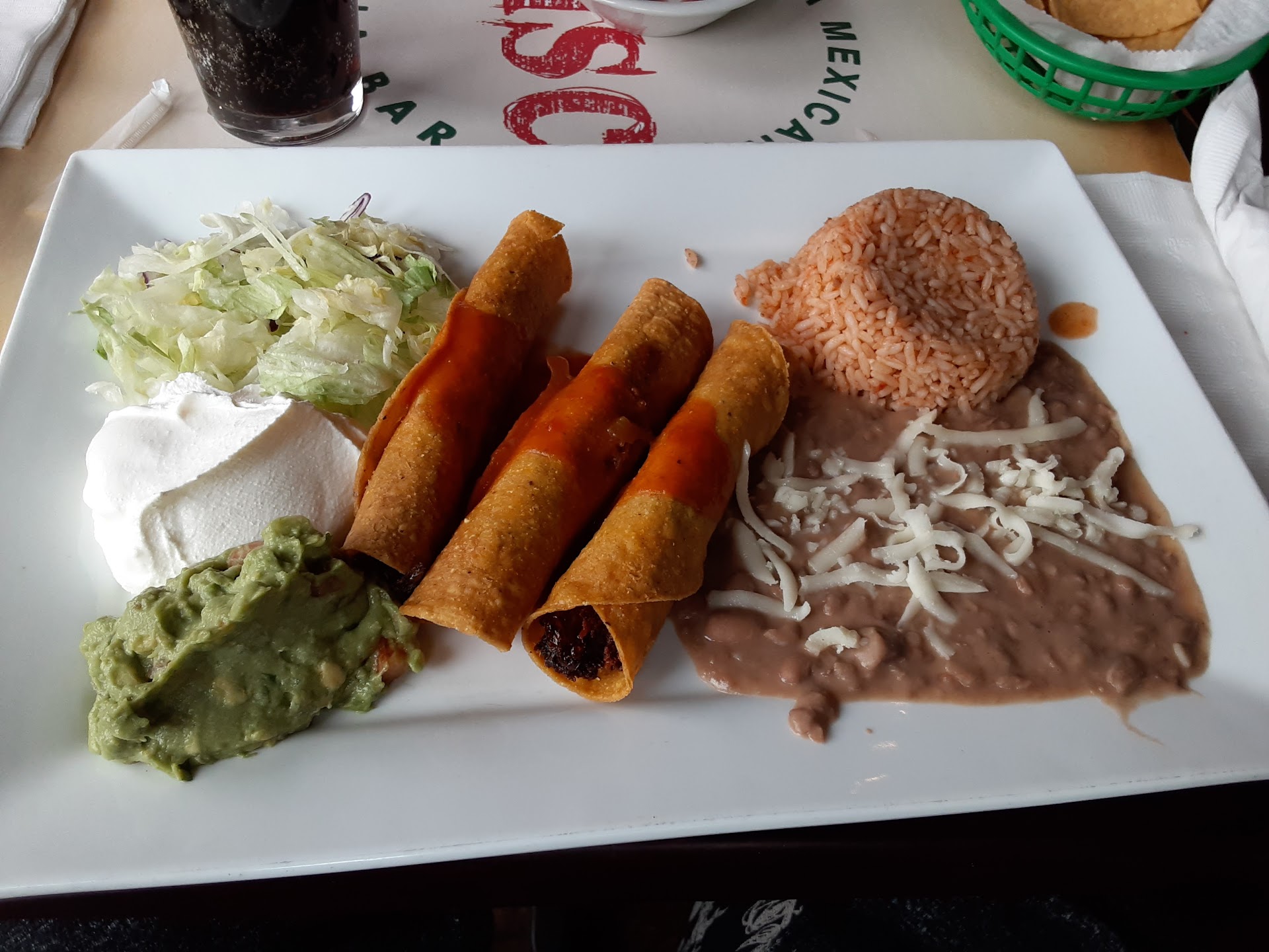 Sadly, that's not the case. Being a fairly small town with few mexican places in this pandemic doesn't mean that staff can chill, be careless, and rest on their few local customers that they're used to getting. Long story short, were not happy with the service, their nonchalant almost careless attitude about everything, expensive prices $$$ (their prices according to google). I will say that the owner was nice and threw in a free flan but honestly that just didn't cut it after such an annoyance and his comment about them doing well.