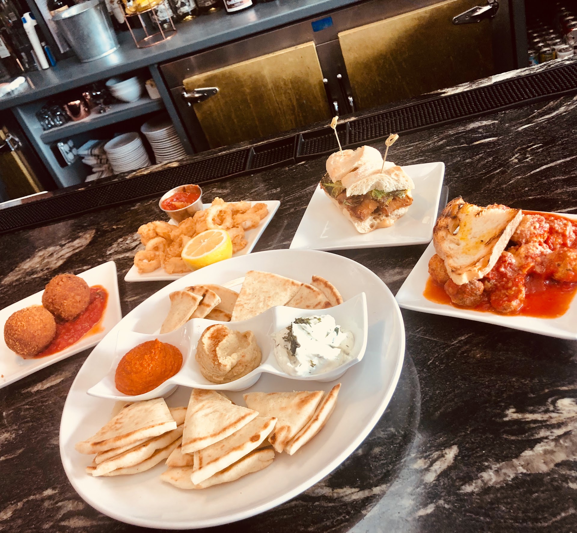 Meritage offers four small plates for $5 each at their happy hour. We ordered one of each: Arancini, Calamari, Meatballs and Bocadillo. We also ordered the trio of spreads, Hummus, Romesco and Tzatziki which came with homemade pita bread for $7. All of the portions were generous and more than enough for the three of us to share.