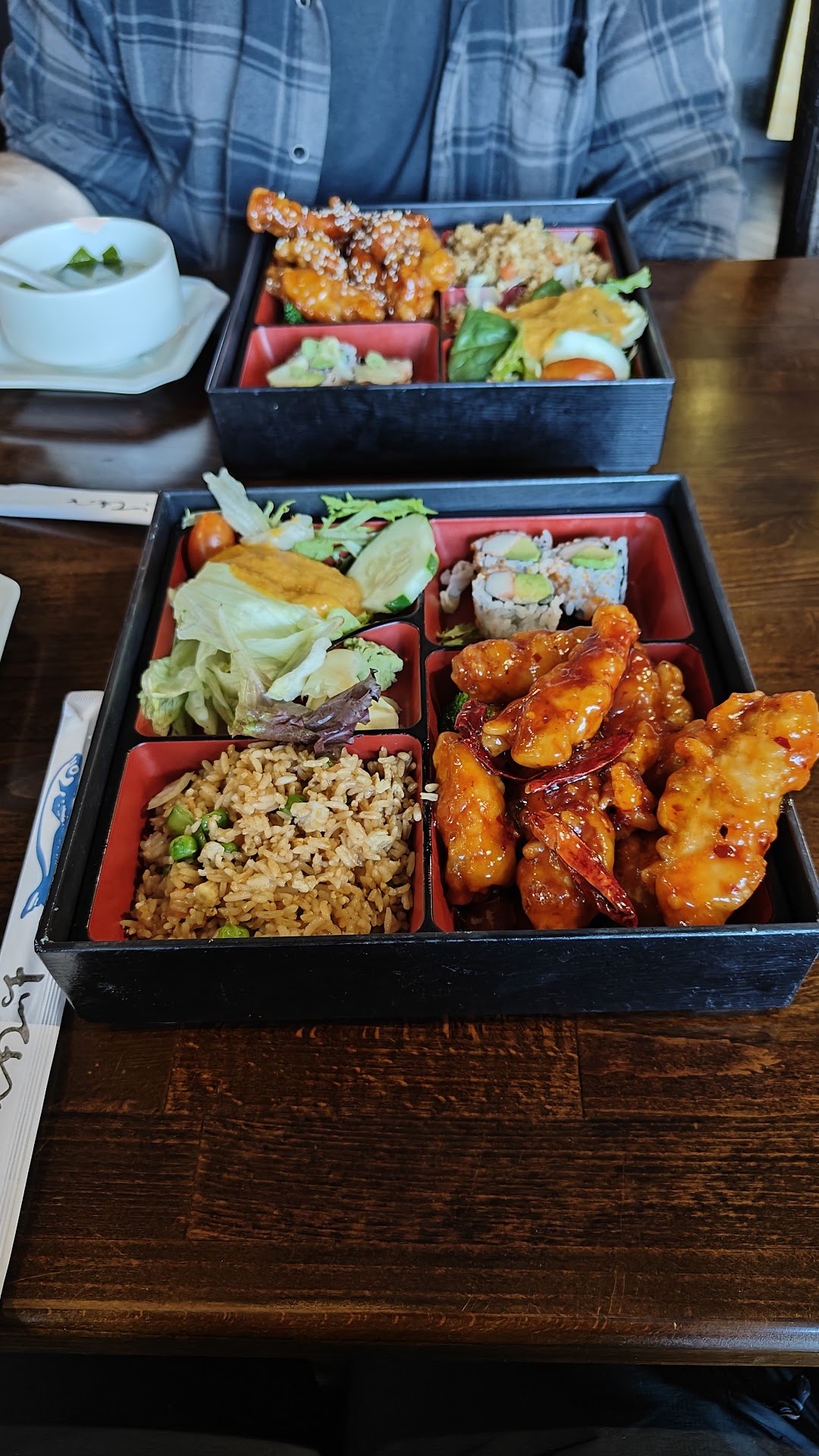 ⚠️UPDATE AT THE BOTTOM OF THIS REVIEW⚠️ We used to really like this restaurant but the food changed and the environment changed. The avocado roll was delicious but that's it. My friend ordered the beef roll and she was put off by it immediately and didn't even finish it. We ordered the pad thai with chicken and when it was brought to the table we were overwhelmed with the smell of warm cat food. When we tasted it and it tasted like old fish but we ordered chicken Pad Thai. The menu gives you the option of ordering it with shrimp or chicken and we chose chicken but we found chunks of shrimp in our food. Thank goodness we are not allergic to shrimp but we did get sick last night. I gave the restaurant two stars because the Hibachi is great and the men cooking it are so enthusiastic and happy to be there. I don't ever want to go back but if I do it would only be for Hibachi because I could see my food being cooked in front of me and you can't really mess up chicken with vegetables. I highly suggest not ordering from the menu I'm sorry.