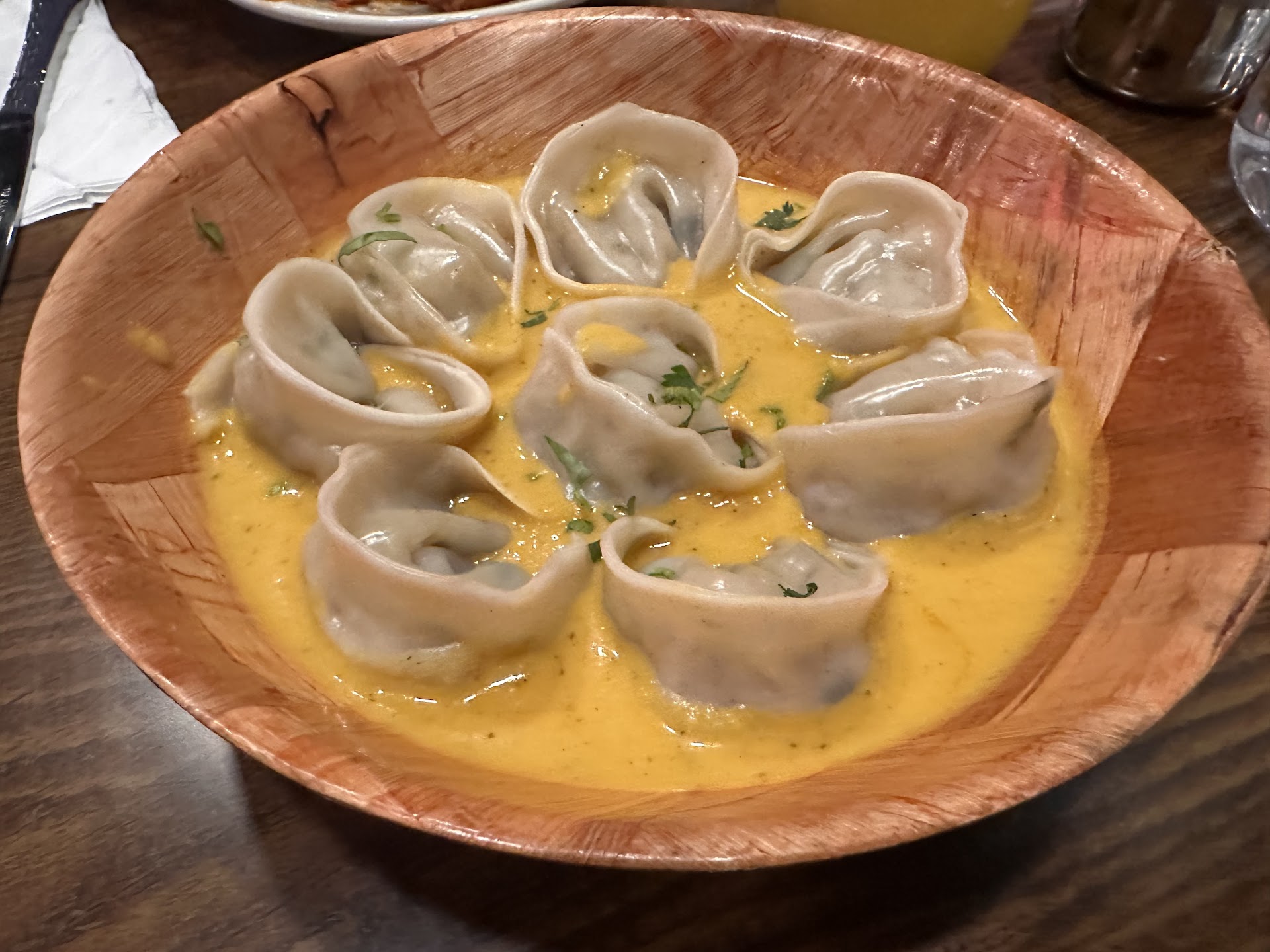 For an entree, my companion and I split an order of Shrimp Momo Jhol. The presentation of the appetizers and entrees was great. The shrimp momo was served in a cool curry, while the actual momos were hot. The flavor was similar to a soup dumpling and the mixture of flavors, heat, and texture was quite enjoyable.