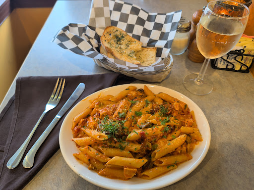 Mandy was equally impressive: wonderfully attentive, composed, and friendly. I ordered a half portion of the Penne alla vodka with chicken, which was generous enough to be a full meal. It arrived with perfectly toasted garlic bread and had a lovely aroma. The dish delivered on every level: the pasta had a great bite, the sauce was tangy (thanks to the sun-dried tomatoes) and creamy, and the chicken was incredibly tender. The owner's wine recommendation was spot on, as the Pinot Grigio enhanced the creaminess of the sauce beautifully.