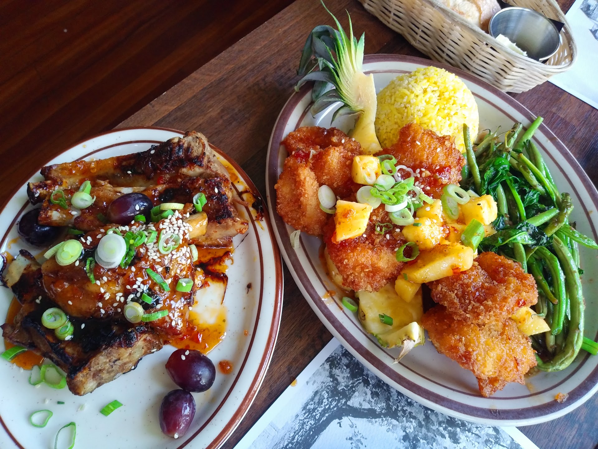 For the entrees: I got the Coconut Pineapple 🍍 Shrimp 🍤 Supper with the Candied Garlic Braised Spare Ribs (so tender). My dinner is the one pictured on this review. The presentation of this dish was beautiful & picture worthy. The flavors of this entree: OMG! 😱 They were to die for. My whole entire dinner was pleasingly, DELICIOUS & Filling