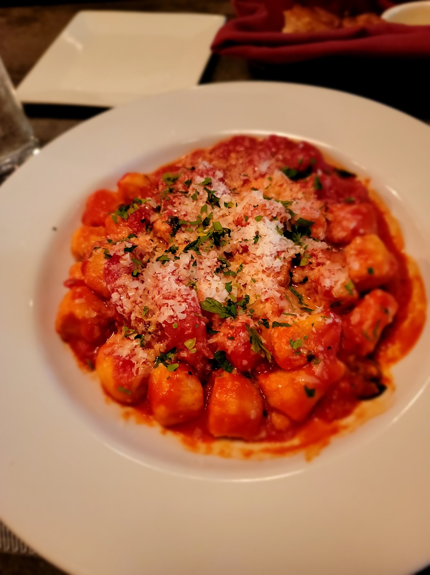 Housemade Ricotta Gnocchi. Usually served with Bolognese. But I asked if I could get their Marinara (I don't eat meat).