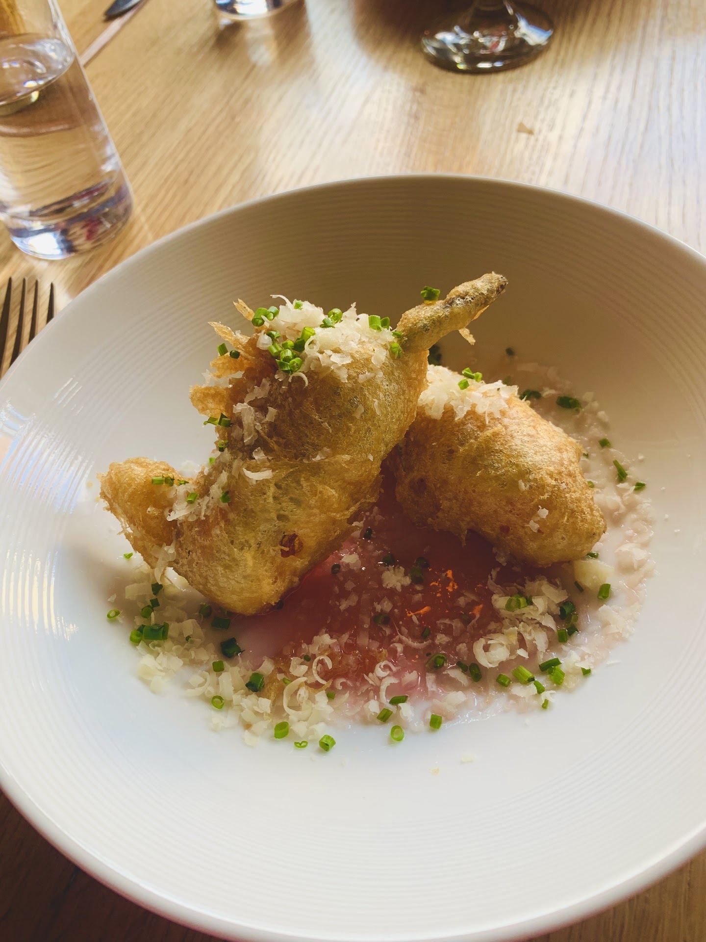 From the Snacks I had the buttermilk fried oysters with caviar, chives and remoulade. They were delicious. Light and crispy, with a tasty sauce/seasoning.
