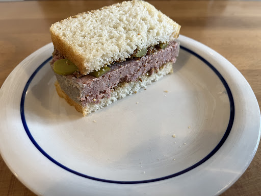 My partner's pate sandwich was also constructed with house-made bread, two thick slices of white. The hearty slab of pate looked delicious, with some thinly sliced pickles and a grainy mustard. It was so delicious, apparently, that I wasn't offered a taste!