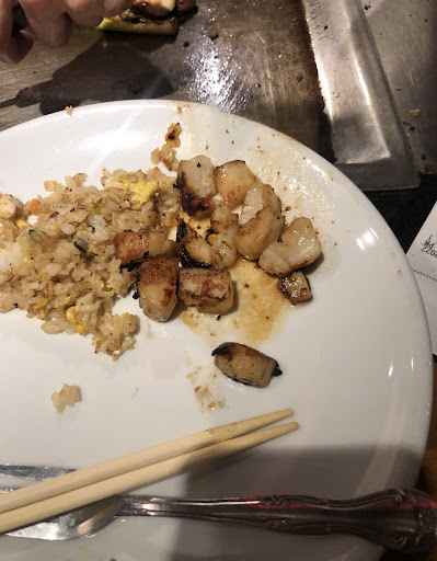 We ordered three meals: the Trio ($58), the Benihana Delight ($47), and the Land and Sea ($51). These are not inexpensive dishes, yet the quality and service we received were unacceptable. After eating so much burnt food, both my husband and I developed sore, dry throats. I also swallowed a bite of undercooked scallop and can only hope I won’t experience foodborne illness as a result.