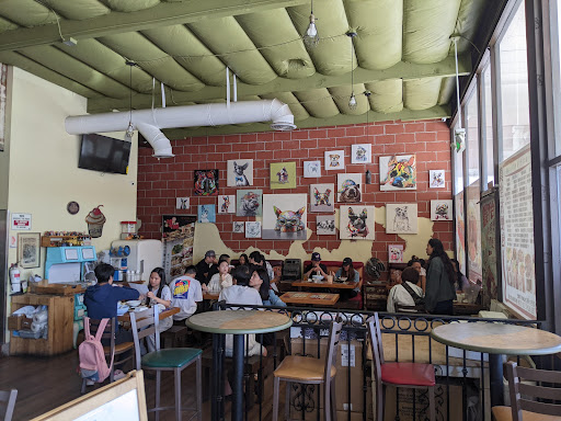 Read moreThis place is a great spot. I’m starting to think hole in the wall is a legitimate phrase because I didn’t expect to find a little treasure trove of a spot in this part of the town. It’s located on the right end of the plaza. When you enter in, it has this pop culture feel with some posters that mainly consists of French bulldogs. My friend and I ordered the red grain pork rice and the braised pork chop rice. You can order one item from the array of side dishes on the back to go with the braised pork chop rice combo. Both orders also came with a soup, which you can choose from the list as well. Both dishes came with either a green or black tea. The teas were slightly sweet and not overbearing. I ordered the braised cabbage, had a nice flavor of umami and overall tasty. The braised pork was definitely tender and flavorful with some thick (not too thick) brown sauce. It was great with the rice. The red grain pork was light and crispy, overall flavorful. I really liked the braised looking pickle. I was expecting a strong flavor/taste from it but it was overall nicely balanced and flavored with a hint of spice. I would come back here again to try other dishes. I am curious about the black pepper chicken as I’m used to eating that type of dish in these sorts of places. I would recommend...