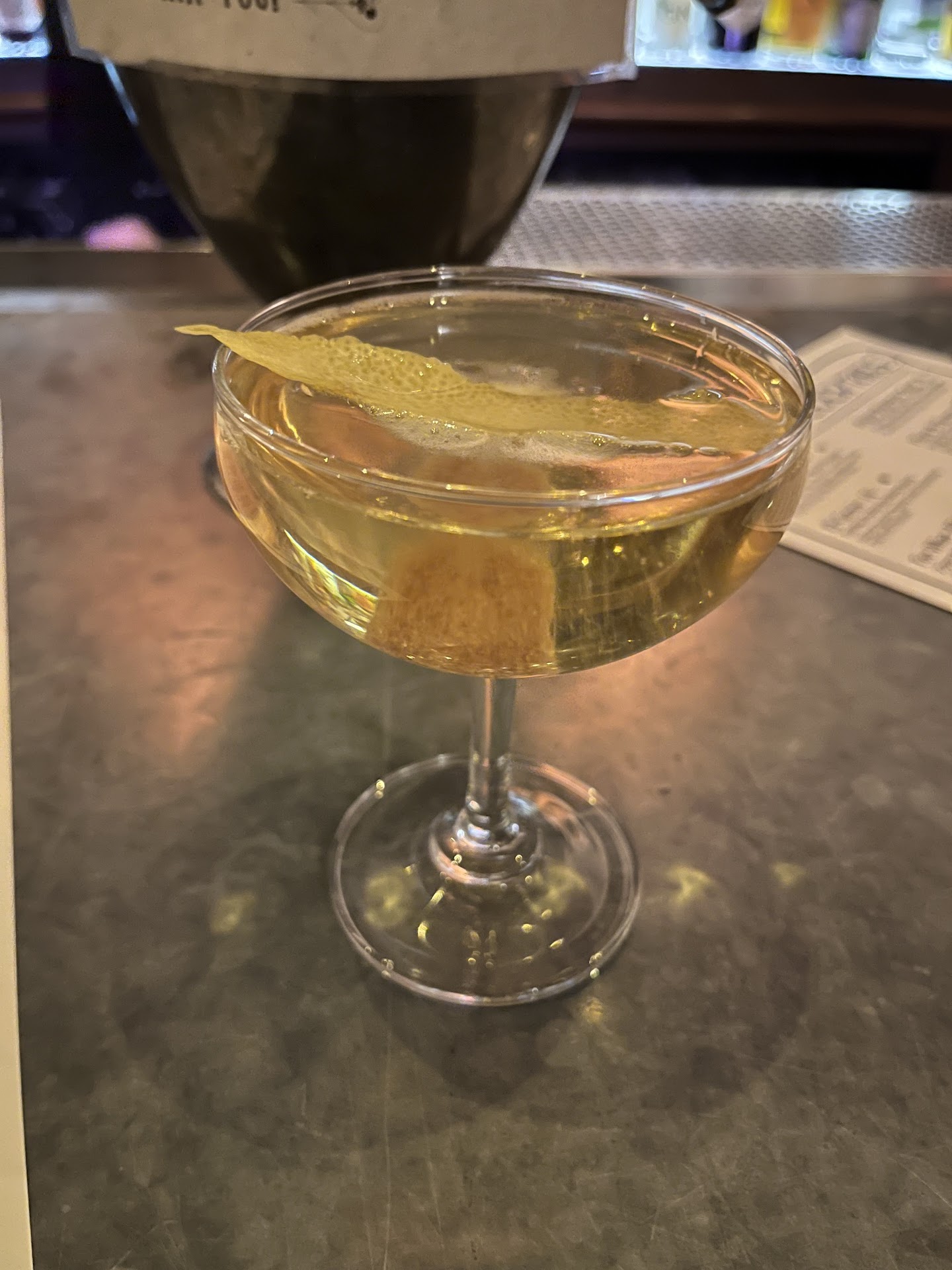 First of all, the ambiance and general aesthetic of the place is very cool. It looks great, and you don't see many zinc bars around. The whole vibe was great. The cocktail menu was well put together with a good number and variety of drinks. At around 10 original drinks with a handful of others, it was easy to peruse and you felt confident all the originals would be good, unlike a bar that has a book-length menu where a third of the cocktails were not properly vetted. The stuff we ordered off the menu was inventive and interesting. And, the bartenders were very knowledgeable and able to accommodate our requests for other classic cocktails as well.