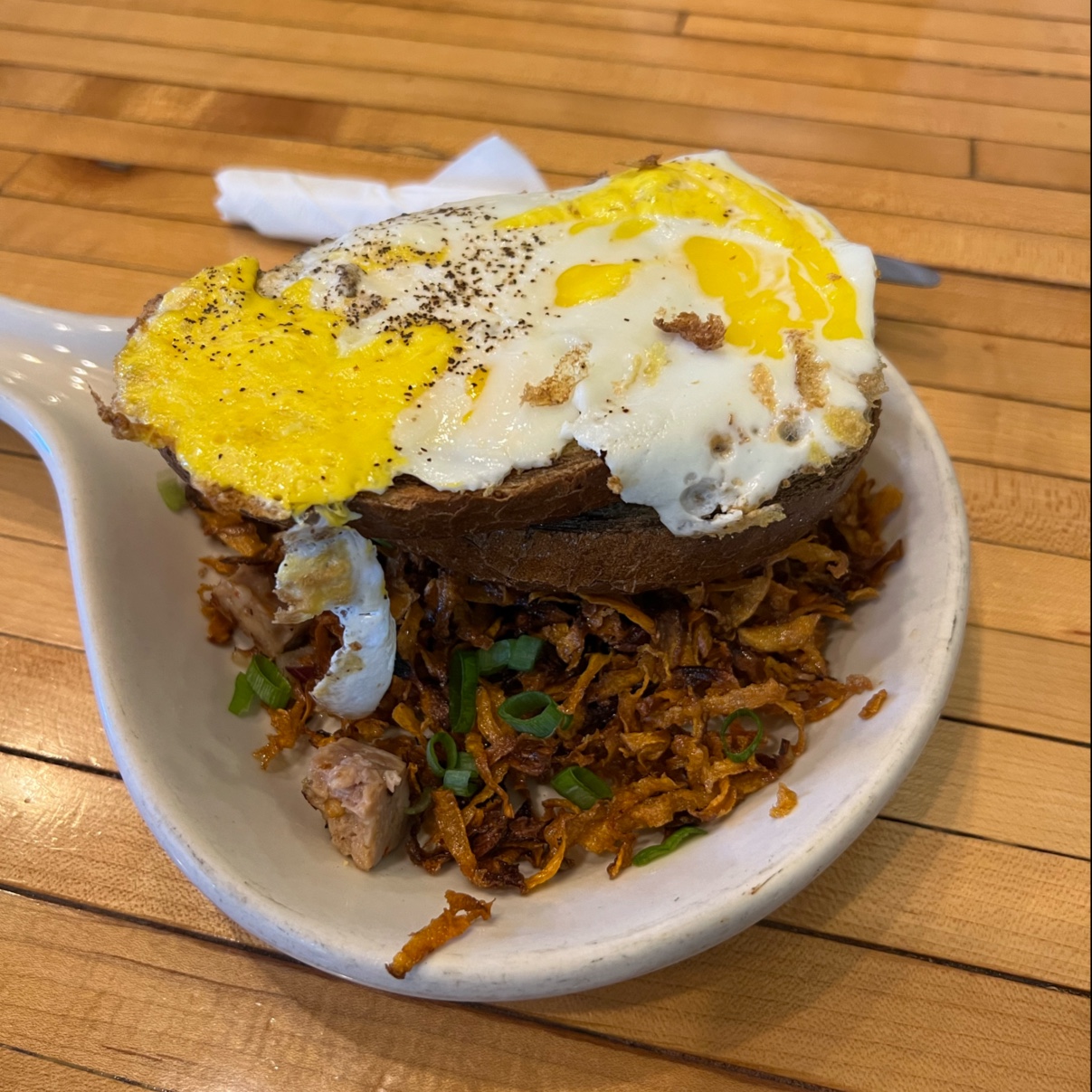 Read moreI think it's overrated. The whole ordering and paying procedure could be better organized. You can go ahead and choose your table, but there are no signs telling which tables have been cleaned. There is no boards or LCDs at the ordering section to easily have access to the menu and once I asked for a menu the staff didn't have one to hand me, and was like go pick it up from there! I think it was a little rude and disorganized. Then I asked to pay for my friends and they said "yeah, I got their order, you can pay at the end" then I realized one of my friends was charged separately and they had forgotten to write down my other friend's order. The food was average. Omlet was not that tasty, and the bread was either not toasted at all or it was hard to notice. I was excited to find a good place for breakfast or brunch in Ithaca and I was...