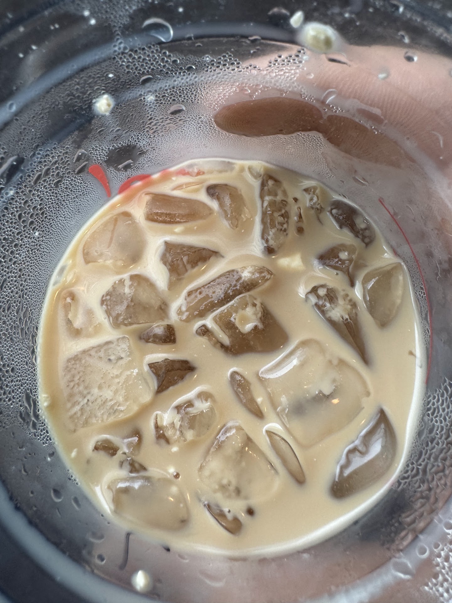 While I was standing near the counter, I saw the barista pour regular milk into the iced latte. Immediately, a lot of white curdled floaters appeared on top. I overheard the barista say to another staff member, “I don’t know why I poured this,” and then she proceeded to scoop out the floating curds with a spoon instead of remaking the drink. After that, she simply added ice and handed it to me.