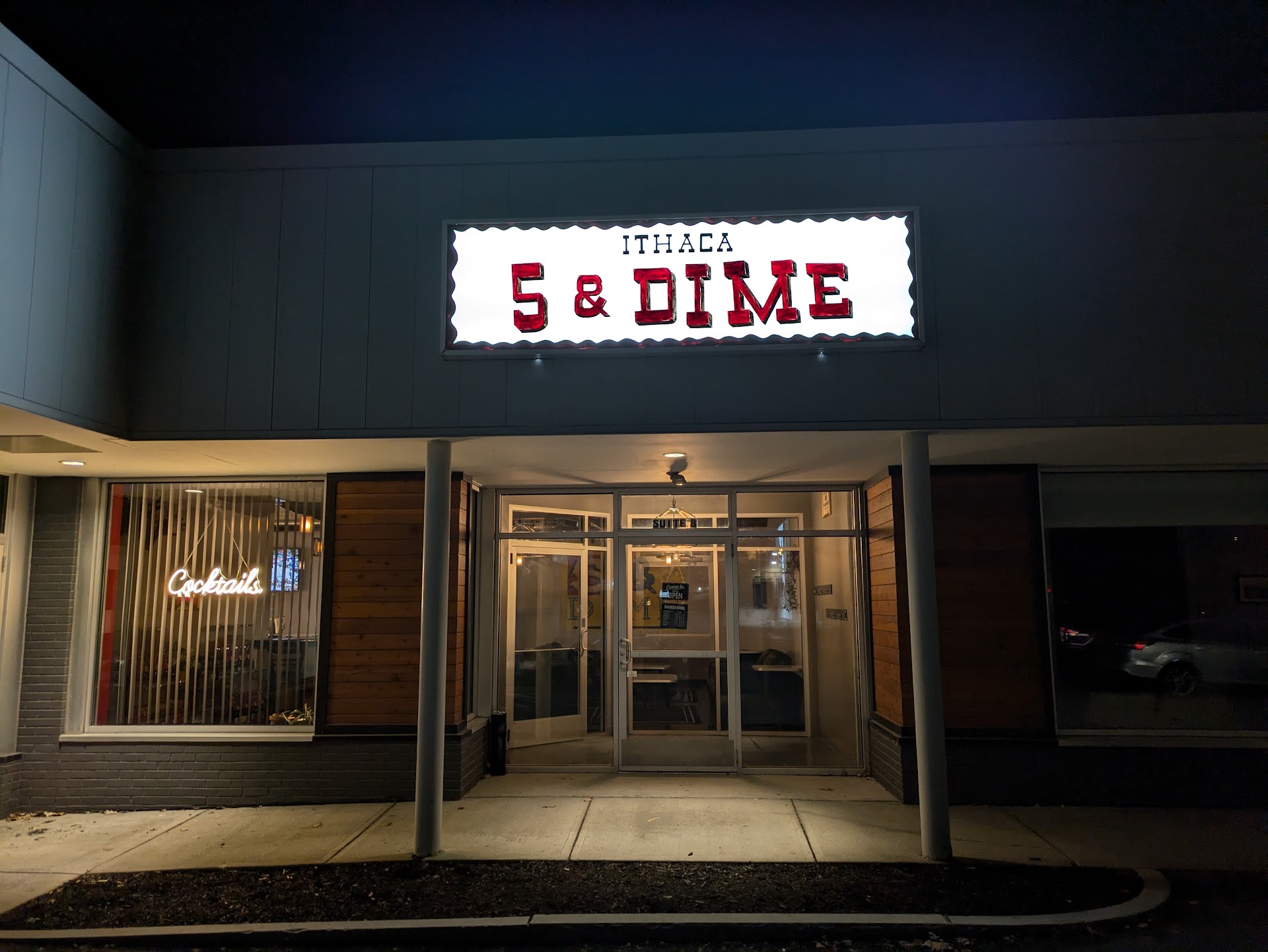 A relatively new bar tucked away on Ithaca's West side. (behind Maxie's - perfect for an after dinner drink and snack). Chill crowd and friendly bartenders. Has an old school (5&Dime) feel to it. The place is still finding its niche, but has quickly jumped on the rotation for us on the weekends.