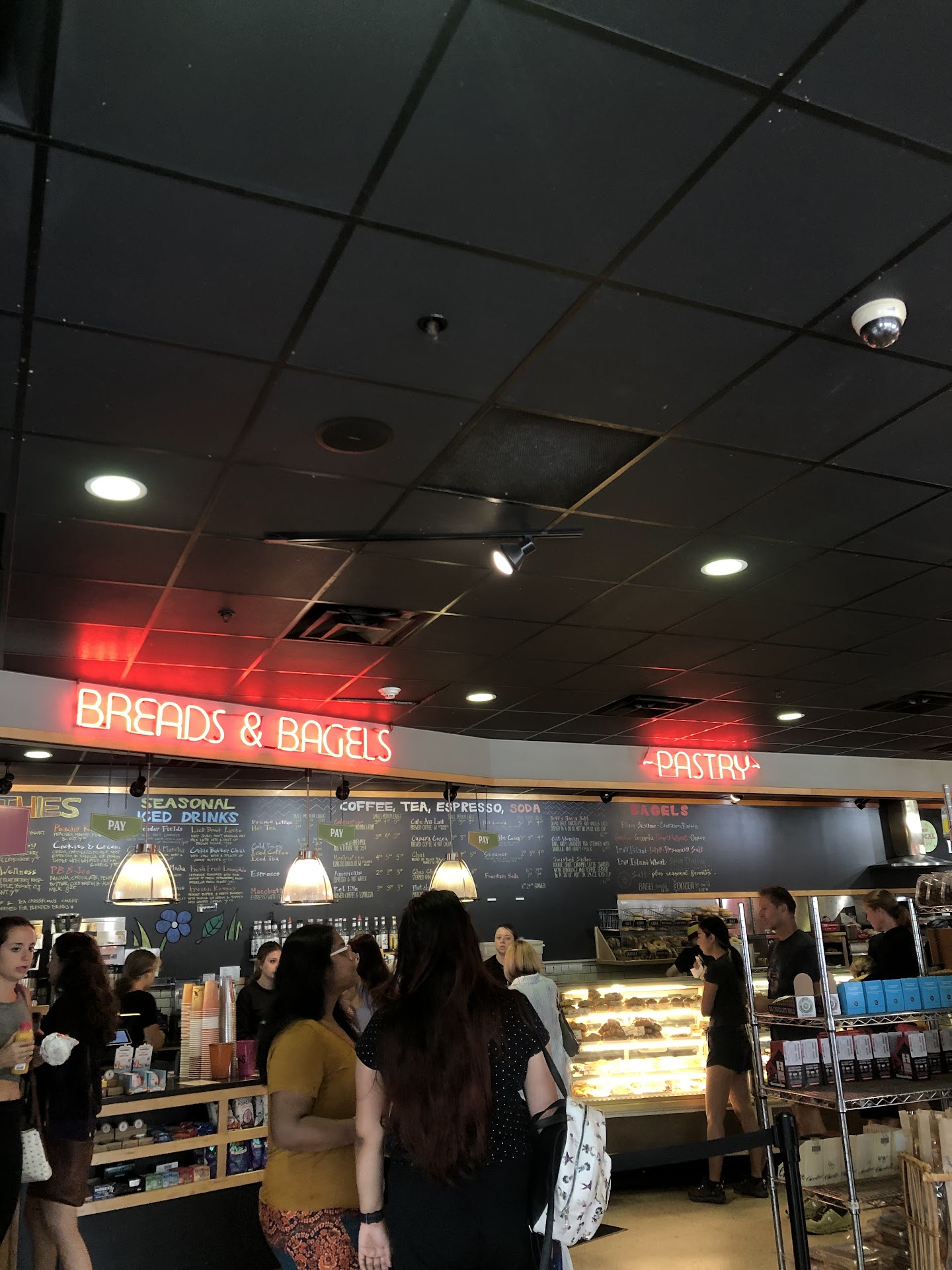 When you first walk in, it is a clstrfk of people, signage, and products. There's seemingly four or five separate counters, three coolers distributed throughout the store, and seating or line space everywhere else. Lineflow management is practically nonexistent, leading to 5-10 people minimum milling around, either waiting to pick up, pay, order, or try to actually look at the products or menu boards. You pay at a seperate station from where you order, and you order sandwiches, pastries, and drinks at seperate orders. While most of the staff is pleasant, I feel that they, too, are struggling to keep some semblance of structure both behind the counter and in front.
