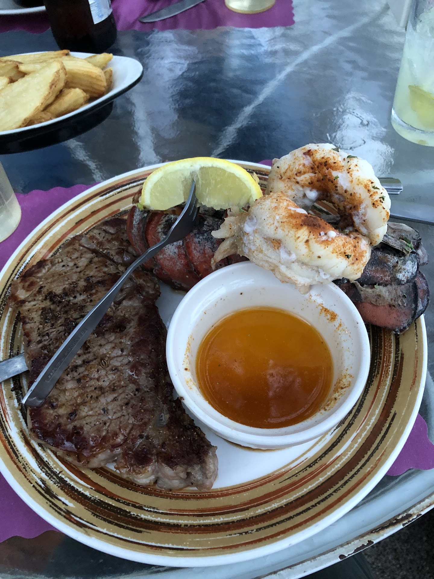 Read moreWent with my girlfriend when looking for something to eat relatively late (about 8:30 pm). Upon entering, the inside was unbearably humid. A man who turned out to be the cook for the night (or so it appeared) greeted us at the door to seat us, forehead dripping with sweat. On our way back to the deck, we noticed a chair propping the singular bathroom door open next to an industrial fan. Yes, there's one bathroom. Only one other party was eating besides us, which was sort of a red flag to me. The deck was poorly lit. Plates and cups were already placed, which didn't appeal to me as it was outside in the summer near an inlet. Spider webs littered the dinning area and surrounding vegetation. Tables weren't covered, exposing a bare, rusty, "mesh", metal surface - not ideal for dining establishment. While waiting for our food, a patron from the bar up front, stumbled out to the deck and, completely unaware of our presence a mere 40 ft away, began urinating off the deck, along the side where the kitchen leads to the outside. In terms of the food, albeit being reluctant to eat: my salmon was tasty; fried calamari was properly fried; my girlfriend enjoyed her battered fish sandwich; however, the "breadstick" with my side salad was nothing more than a toasted hot dog bun... In all, I felt bad for the place - Potential is there. The man who was serving us appeared to have also been the cook, so obviously there's staffing issues. The patrons at the bar (4) gave off the impression that they are the regular business and probably don't help in creating a welcoming environment. The building appears old, and along with the lighting, gives off a dingy feel. It's apparent the owner needs to re-think his business model and consider some aesthetic changes, to start... If he cares. I...