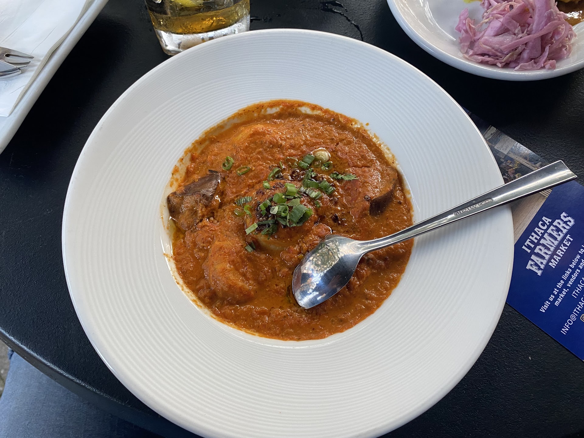 I ordered the yellow cherry seabass and my partner got the ribeye special (the photo I'd blurry because we were so excited to eat I rushed and forgot to look at it). Both of the proteins were cooked too perfection. The fish was soft on the inside with a crispy skin, covered in the next curry I have had in Ithaca.