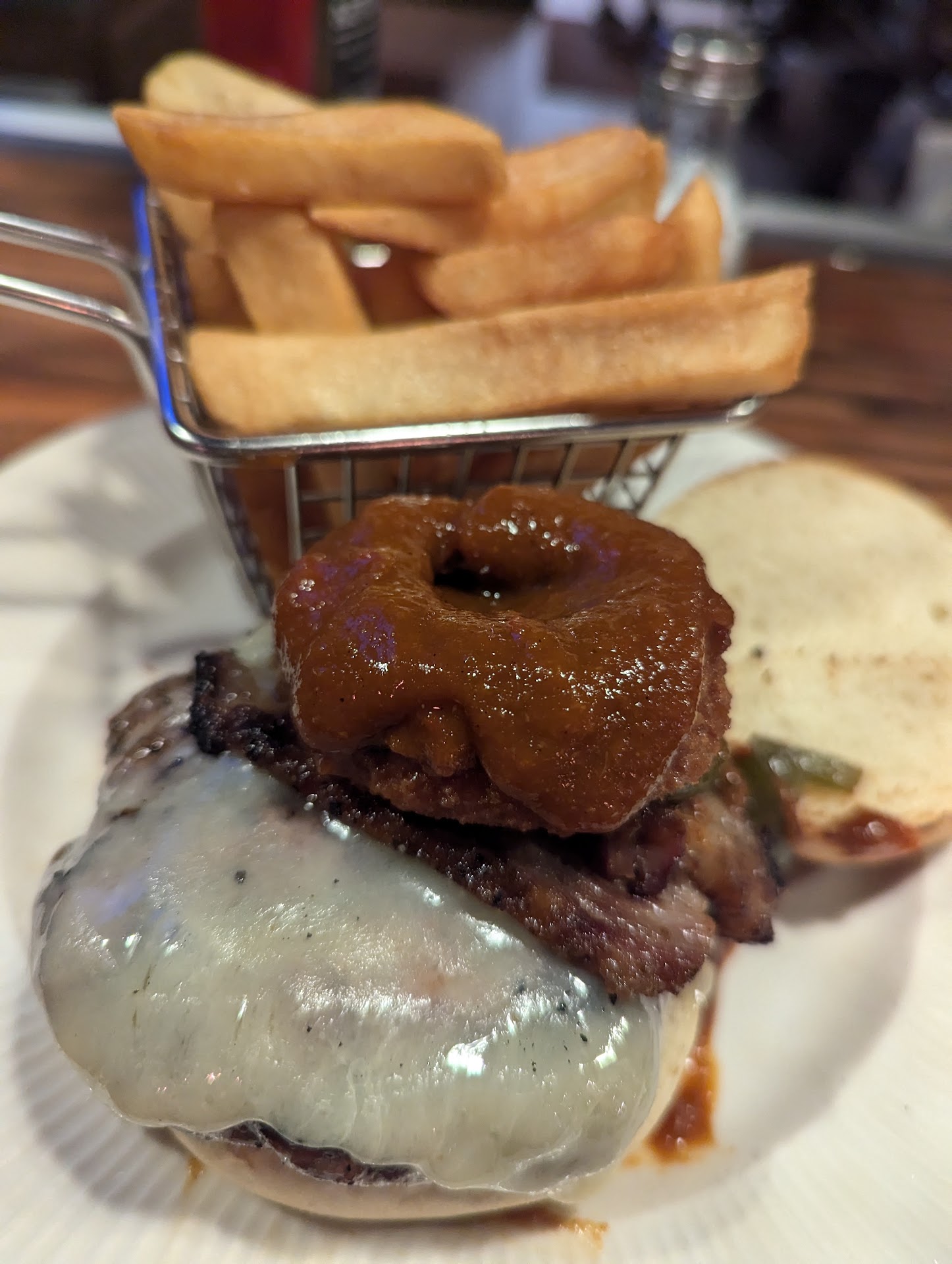 Ok, back to those burgers. Tied for my favorite in town and worth the stop in for these alone. They have a few regular options on the menu and a monthly special that makes you stop at least that often. The last monthly for me was 1/2 patty with a pile of brisket, candied jalapeños, melted cheddar, fried onion ring and their own BBQ sauce... AMAZING! The standard "Aurora street burger' and a great bacon cheese burger'. Thick 1/2 that's always juicy and cooked perfectly. A quality beef and always delicious. But treat yourself to an adventure and look further down the list for something a little different - "The PB & Jealousy burger". Yes, it's what you think - a peanut butter spread on the top bun and jelly on the bottom - it just... works. It's not an every day burger, but one you have to try. My only change would be to have a jalapeño raspberry like option for the jelly - that would make it just a little better.