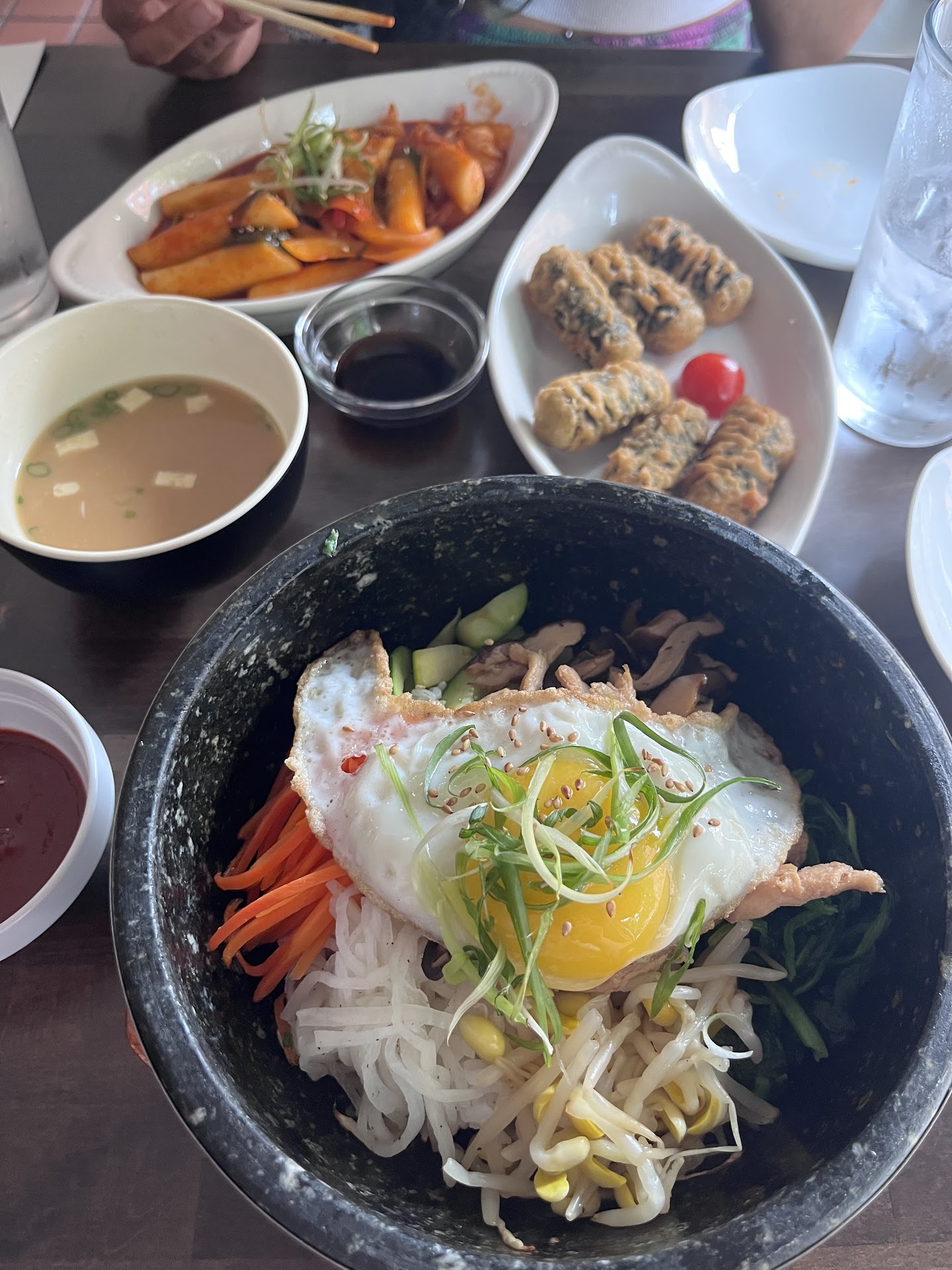 As a Korean, I would have to say this wasn't the best but this is based on the 3 entrees my family ordered. Service was fine and pleasant but the table was still wet as we sat down and had that smell of being wiped with a musty towel rather than something sanitary. We ordered the nacho appetizer that comes with some bulgolgi beef but it was like a plate of melted cheese with a few specks of meat and barely any chips in it. My wife ordered an udon soup. Broth was watery, lacked flavor and depth and veggies were regular broccoli instead of a more Asian vegetable like bok choy or Chinese broccoli. My son ordered the pork belly, almost the most expensive dish on the menu, so was expecting something delicious. What he got was a few slices of pork belly barely seared and on top of a ton of raw sliced onions. came with a side of spring onion salad and white rice. The pork belly had no seasoning, which would be ok if served with dipping sauces. if you order pork belly at a Korean bbq place, you typically have 3-4 sauces. spicy Gochujang sauce, soy sauce, vinegar w salt and/or sesame oil with salt. Since pork belly has no seasoning unlike bacon, it makes it a blank canvas/vehicle for a restaurant to really show off its ability to elevate it. Didn't happen here. I finally had to ask for some sesame oil and some salt. Lastly, I ordered the Bibimbap with beef. This was probably the closest and better dish of our choices. The only negative I would say is the beef used. It was the same type of thin sliced beef used for the nachos. Not much flavor and not much meat. Many places serve it using seasoned ground beef w a touch of sesame oil. Not that you can't use this type of meat, but it should be seasoned authenticity for this type of dish. If you don't eat Korean food but in a blue moon then you won't have a comparison point of view and most of this would be fine. Except the amount of cheese to chip ratio, bland pork belly and...