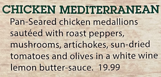 Read moreIt was another Tuesday and we were not in the mood to cook and as usual every place you wanted to eat at was closed. We had not been to Romana’s in a year or so and that was a shame because I wish I ate this dish yesterday. She had the Eggplant Parmigiana and I had the Chicken Mediterranean. Her Eggplant dish was very organized and plentiful with nice breading and sauce that tasted wonderful with a bit more finesse and flavor than you would normally expect. You will probably be bringing half home for another delight later. I was going to get the chicken Mediterranean salad and the waitress thought I meant the dinner so I corrected her and she then described the dinner dish and I switched my mind from the dinner salad to this dinner dish. Hands down it is 1 of the very top and best dishes that I have ever had. It Melted in my mouth with an explosion of lemony butter and a hint of white wine which enticed my pallet over and over. Just look at the pictures! I had intended to eat half which in reality you could have eaten a quarter but no way! It was magnificent and cosmic with explosions of well developed textures and flavors. The price is not to be looked at because they could charge more and you would still say wow! this is a lot for the money. Thank you for reading and remember, tell them “some...