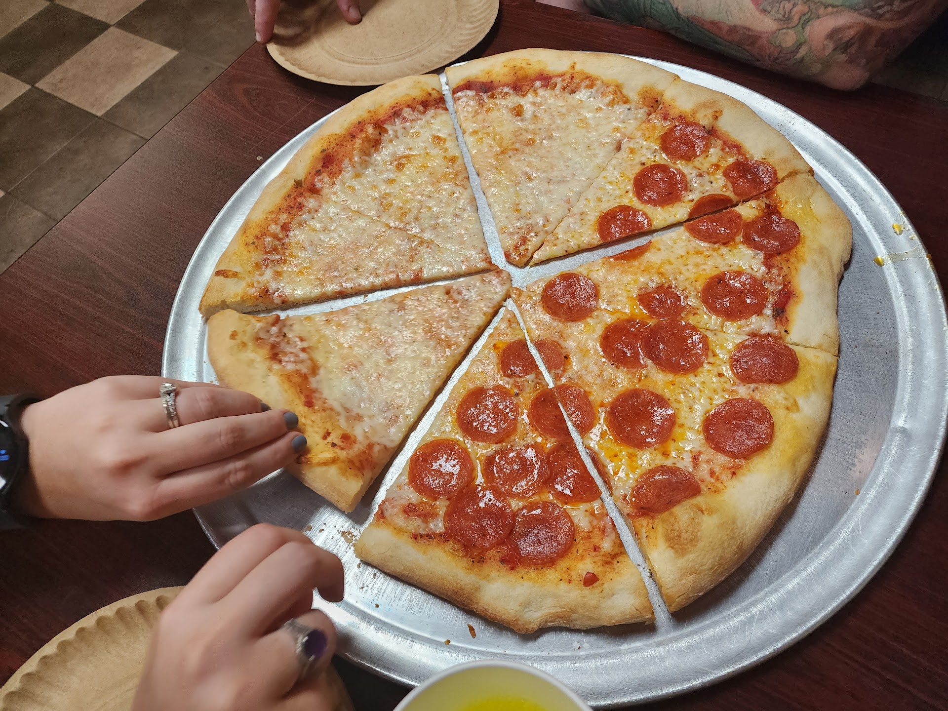 Read more440 Pizza is THE best pizza in Kingston. Their pizza tastes like real New York pizza. Thin, crispy crust, sauce with garlic and a little zing, topped with a generous amount of mozzarella. Really good pizza.