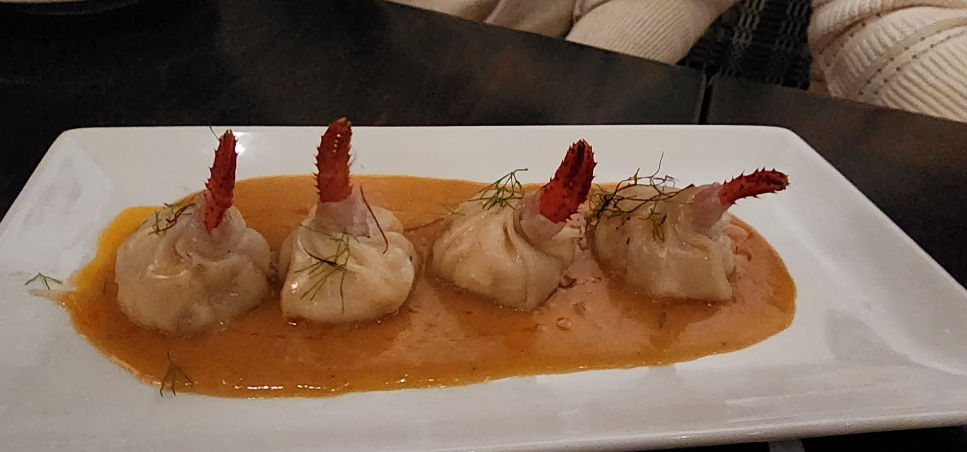 Read moreI loved the outdoor seating at this restaurant; it is very inviting and surrounded by cozy lanterns. Our hostess was lovely and we were seated quickly. Our server was also wonderful. We decided to get a bunch of different appetizers. Lobster dumplings, bao buns, Kobe sliders, and short rib Thai dumplings. Dessert was campfire s’mores. The lobster dumplings were very good, but the presentation was even better. The short rib dumplings were ok; I wish they’d had a separate ramekin of dipping sauce; rather than seating the dumplings in a shallow platter of said sauce. The Kobe sliders were awful and dry. The Patty as well as the roll. There was barely any sauce on the sliders and the toppings were crudely chopped and unappealing- probably not me if the worst burgers I’ve ever had. The bao buns weren’t those white squishy pillows of deliciousness that I was absolutely craving. They were brown and dry, and the prick wasn’t particularly appetizing; it could have used some sauce or seasoning. Not a fan. The campfire s’mores dessert was awful. I understand they are trying to give a campfire vibe- but s’mores font taste Smokey- this dessert was so smoky and inedible to me. I was also under the impression it would be s’mores ice cream. This was a tiny cookie(that did not taste like Graham cracker) a scoop of chocolate ice cream- 2 brûléed marshmallows. And although the menu states ganache- theirs had hersheys syrup on it. It sucked. I gave this place 4 stars because I loved the menu items. There are so many tasty sounding items. They really need to work on execution. Cocktails were delicious!!! Ambiance was wonderful. I’ll go back- buy definitely would not get the sliders , bao...