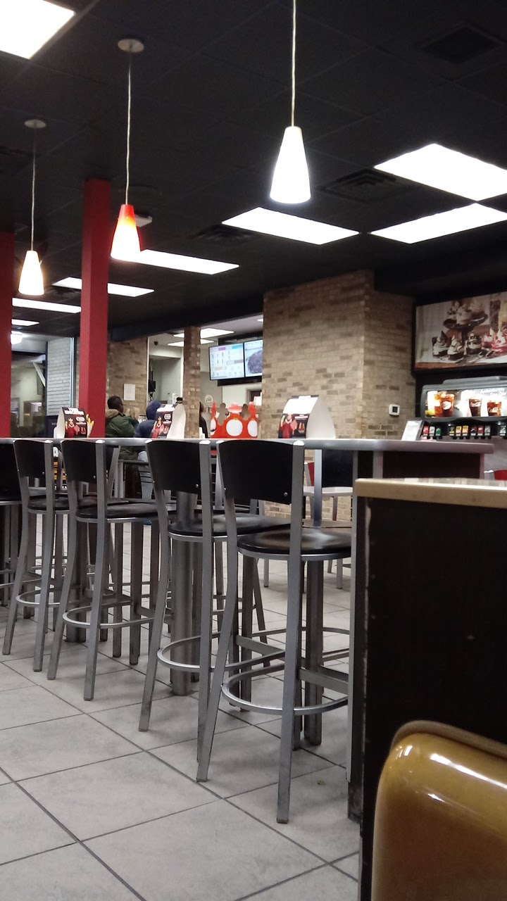 I went about 1230-1ish on a Wednesday. Food was good, it came out quickly and hot. Staff was friendly and attentive to drive thru, but distracted from front counter. I had to wait over 5 minuets to ask for a dipping sauce, and over 5 minuets again for a small take out bag when it was time to leave. Manager was present and assiting staff, which was great to see. Bathroom was a little sloppy, understandable for the time of day and location, but many tables also had debris or stick spots, which didn't leave a lot of options for seats. I opted to sit at the raised bar area because it looked the cleanest, which also gave my friend a chuckle because I'm 5'3" trying to jump into a chair almost as tall as me. Over all the...