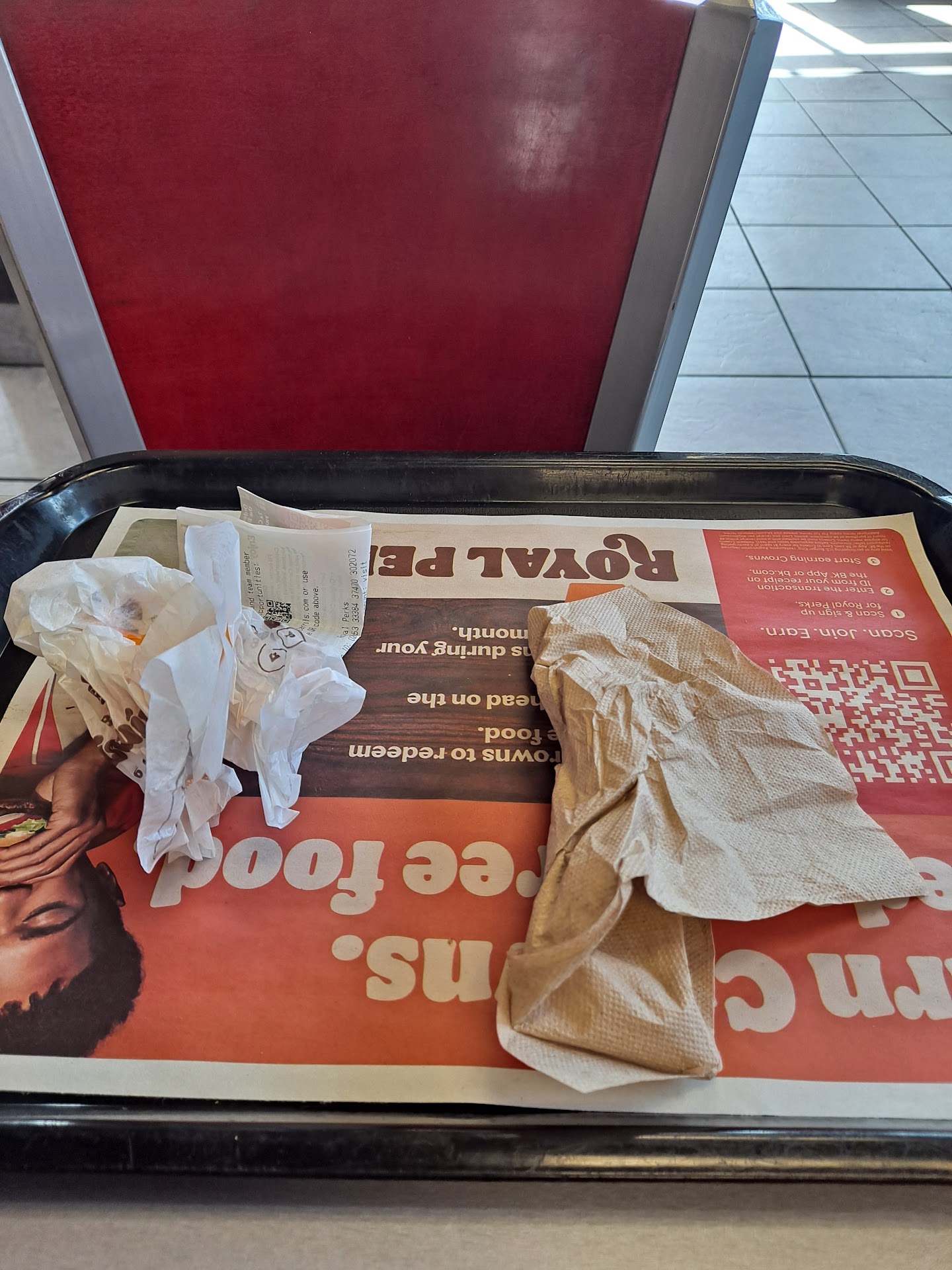 Read moreWent there just to get a bacon king just the sandwich figured it would be an easy order for them substituted the ketchup and mayo for stacked sauce even asked them if that was okay since I didn’t want to put them out there way doing that and they said yes then I get home sandwich got no sauce what so ever on it and bacon is all burnt but hey what else should you expect from fast food but really can’t even make one simple sandwich correct and I worked bk for two years when I was younger I get it but come on people I had a rough day at work just wanted something to eat quick but whatever...