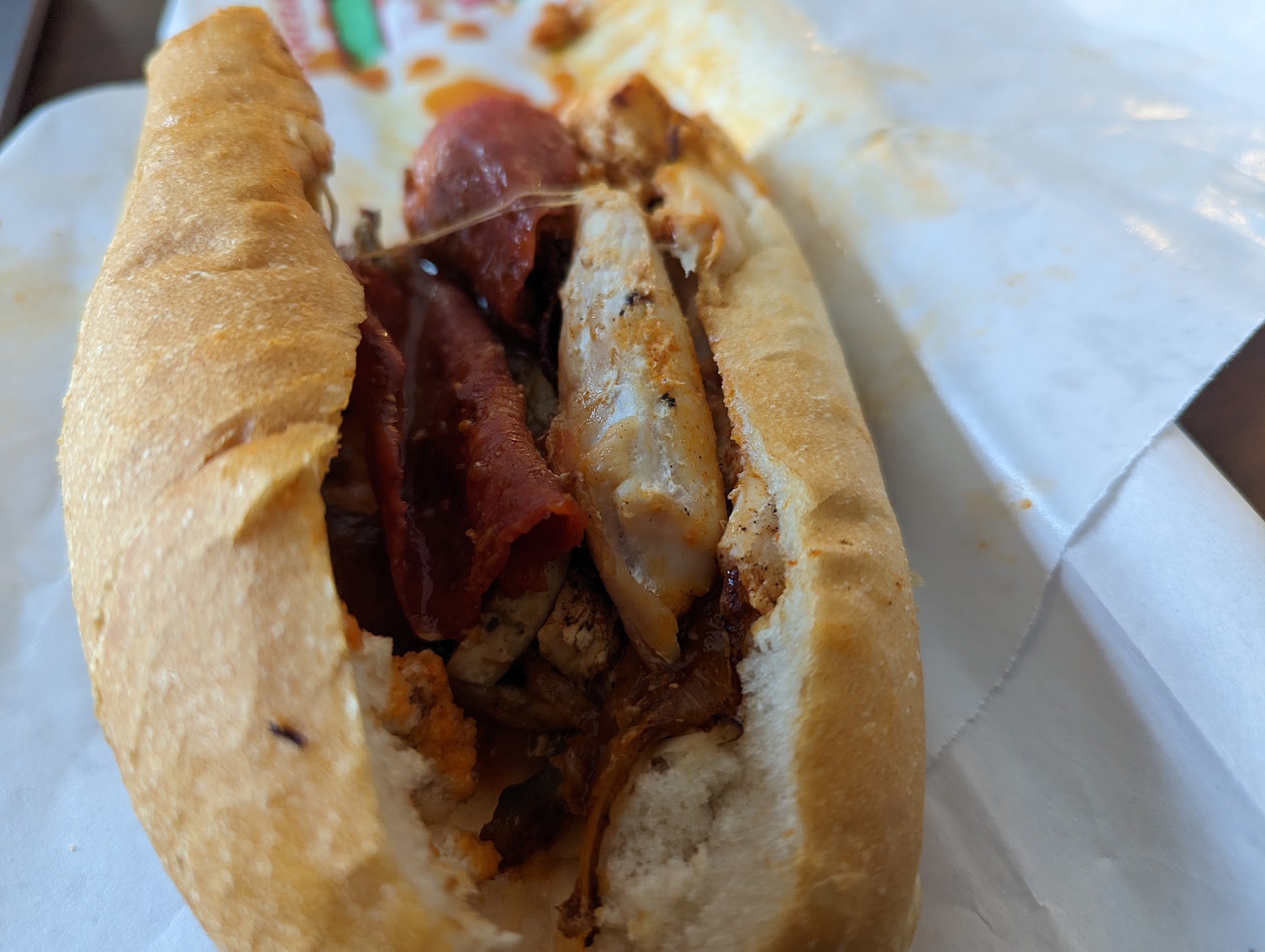 Today I needed to break a $20 so I could purchase substances on the black market. I happened to pass by this shop, so I went in to ask for change. I was immediately barraged with the most fantastic scent I have ever encountered in a place of food. I knew instantly that I must eat there. On the wall was a giant menu of their sandwiches, with recipes so insane I knew I'd found my home. They had one called the Big Pun, referencing a great rapper who tragically passed away years ago due to a chronic food overdose. This solidified my thinking: these were my people.