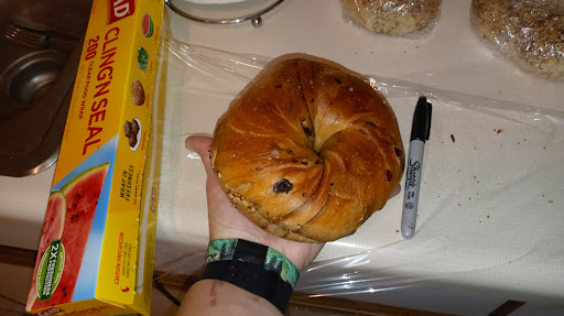 First thing to note...they are cash only! Secondly, I'll definitely be going again. A friend of mine that lives over an hour away from Kingston drives to get 2 dozen bagels here every couple months. She wraps and freezes them which is what I intended to do. For her to drive over an hour to get bagels, I figured it was a place I had to check out. First time I've ever seen a pumpernickel raisin product. So those were first ones I had added to the bag. Gotta say, I'm sadly disappointed in the flavor. I love pumpernickel but these barely have any pumpernickel flavor and not many raisins. However...the size of these bagels is crazy awesome. They are also so fresh tasting, chewy, and then super soft on the inside. I can see why they are so popular and well liked. I have since tried a plain bagel and a cinnamon raisin. Cinnamon raisin lacking in cinnamon flavor and raisins. I know their sandwiches are very popular and plan on trying one next time I go. I still have other flavors to try like the Garlic, Everything, Salt, and regular pumpernickel. I really wanted to try their blueberry but they were out of them. While some flavors might be lacking in taste, I still have to give 4 stars just based on the size, texture, chewy/softness, freshness and price. Under $12 for a dozen fresh, homemade bagels!!! That's fabulous. I went around 12:30 on a Saturday afternoon and it wasn't incredibly busy. Busy but not overwhelming. If I were ordering a sandwich or going during the morning, I suspect the wait would have been longer. But just grabbing a couple dozen bagels was quick and easy. One last thing...if you are vegan they unfortunately do not have any bagels that are vegan friendly. I messaged them and asked.
