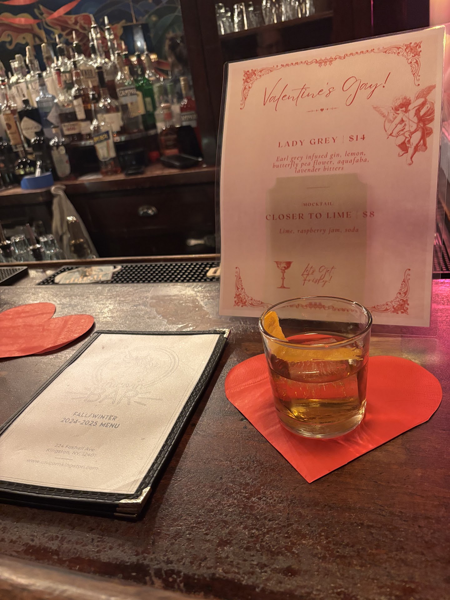 Edit: under the current iteration of the menu, my faves have been the butch rhapsody, the lady grey, the golden hour, the lover club, the maraschino, and the sweet Jane!