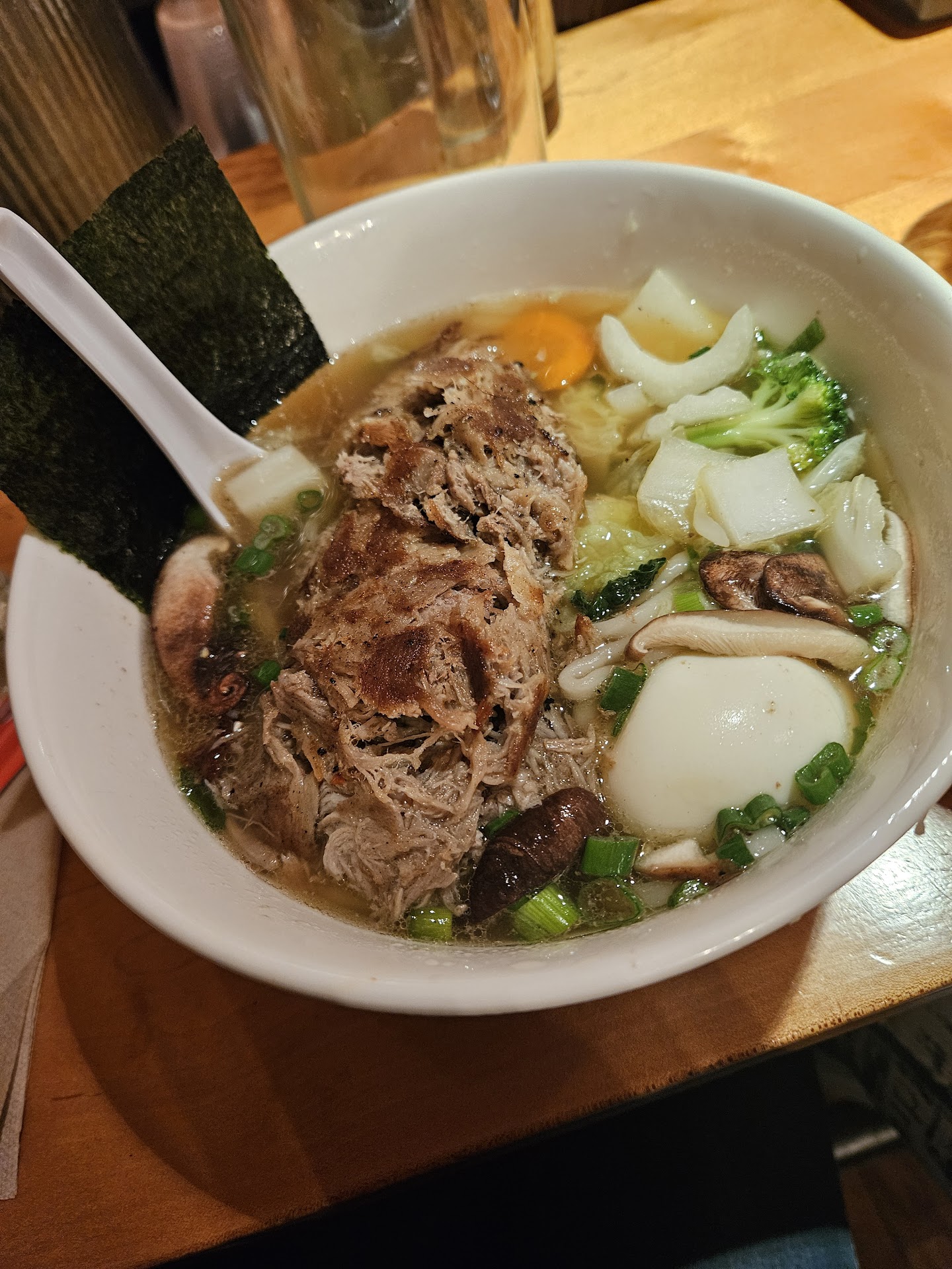 The food was good but got the bill and saw additional cost that we didn’t get last time. My gf both times got a noodle bowl which comes with CHOICE of noodle, broth, AND protein (chicken, beef, braised pork, etc) and it costs extra for pork belly, shrimp, etc. so my gf got chicken (Standard) and added pork belly ($3 extra). This time they charged $5 for chicken (which was the standard option that is included) and $3 for pork belly PLUS the price of the bowl as well. When we questioned the waitress why she added the $5 chicken she said “that’s just how it is” (kind of arrogantly) but she said she could deduct the extra charge (we assumed the $5 chicken since it was a standard option) but instead she deducted the cheaper $3 pork belly. Our bill was $80 and it seemed like a shot in the back for not at the least dropping the $5 and maybe even the $3 for the confusion, but that’s up for discretion. I still left a $13 tip on a $80 bill but I was not happy with the service.