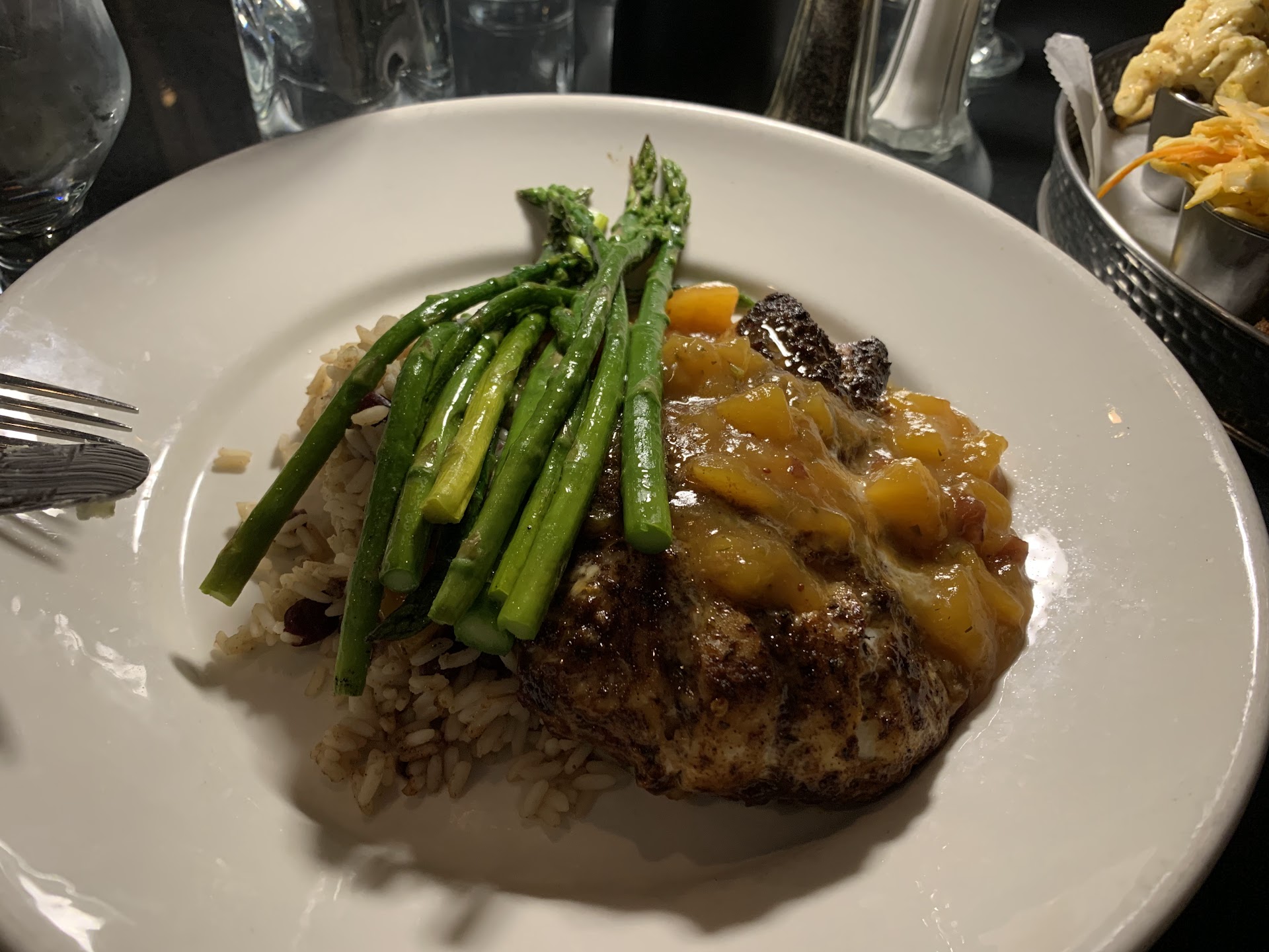 The salmon veggies,sweet potato skillet, came out bubbling and plentiful, The huge portion, was so good, I could only eat half, you are taking the time to fill up the pan, with an amazing amount of food, this is what your paying for. pay attention to the details to the customer.
