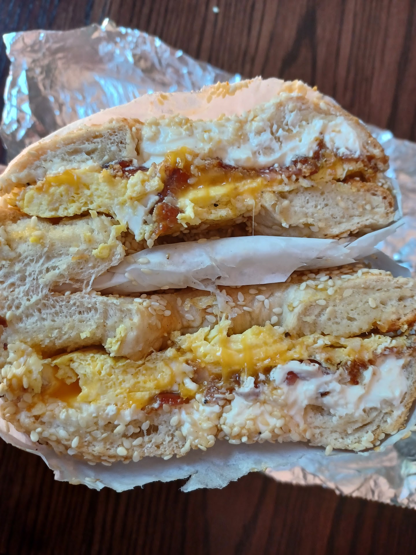 Tried going on a Friday at 10am...out of bagels(?). Gave it another shot the following week on a Thursday at 9am... limited bagels. With it being my first (well second) time here I found it very confusing why there was a shortage right at the beginning of the day. I was trying to examine the menu and the girls said it might not be accurate we are out of a few bagels and we have additional cream cheeses. As a first timer ordering from an incomplete menu the experience was not smooth. I kept saying do you have this or that. Honestly, that's kind of annoying and it was clear that it made the workers a little unsure themselves... checking this and checking that and not just being able to confidently take my order and answer my questions. And not that I really cared about the price... but why no prices anywhere to be seen? When I seen my total I wasnt even sure what cost what. $17 but what was the break down. I ordered: *-Bacon breakfast sandwich on a sesame bagel with the addition of plain cream cheese: there was no shortage of cream cheese that's for sure and it had a good flavor. The ratio of eggs and bacon was a little thin. All I really tasted was cream cheese with a hint of everything else. The bagel itself was interesting. A lot chewier and thinner than I anticipated but not the worst. It was better than the chain breakfast spots that's for sure. I would give the bagel another shot to taste it with a different combo- lunch option and/or with just cream cheese. *-Iced latte. Again they weren't sure if they could make it. I seen the flavor bottles sitting out so I could see they had quite a few more than listed on the menu. They weren't sure what non dairy milks were available. Again..not smooth. The latte was not great. Too much flavor shot. Tasting very artificial. The espresso did not really hit the spot either. Maybe consider trying it with less pumps of flavor (I think they did 5 or so) . Tbh I would probably just try the regular hot coffee next time. Overall: I enjoy going to local small businesses and having a bagel shop in the area is a plus. Breakfast sandwich is an upgrade from breakfast chain restaurants. I would get the breakfast sandwich again but with a tad less cream cheese. I want to check out the specialty cream cheeses next time/lunch options. I would pass on the Iced Latte and check out their regular coffee, which from reviews people seem to enjoy.