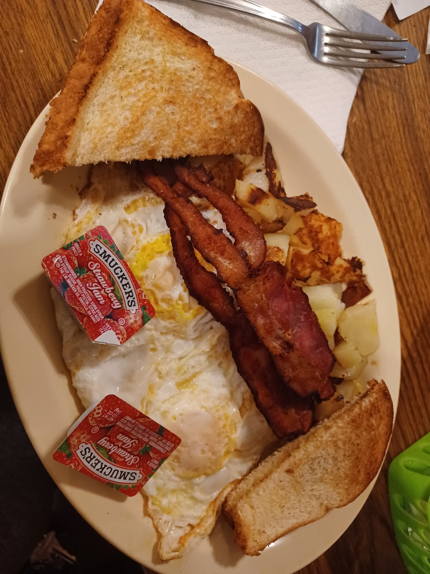 It was clear to me I was dining with a bunch of regulars since one of the people at the table next to me walked up and grabbed a can of pop from the refrigerator behind the counter, cracked it open and told Diane to add it to her ticket. Another guy at a different table got up and served himself coffee. I noticed someone else walking out from behind the bar when we walked in. I'm not sure what she was doing, but apparently it's understood when you're a regular that you're also family.