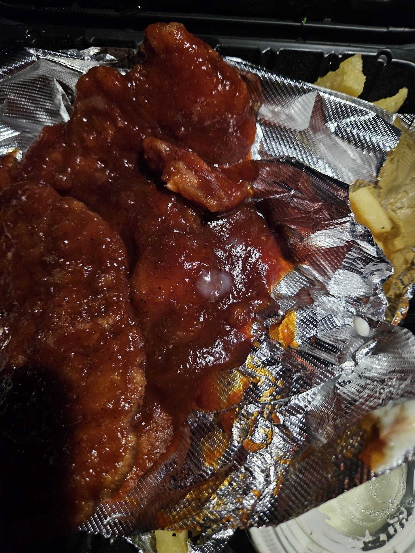 Read moreThe service was my first impression and I would give it 3 out of 5 stars. Our waiter didn't ask if we were ready to order for a while. Once she dropped off the drinks we had our menus down ready to give our order and she said she had to run food and she'd be back for the order. Well we waited a while. Once our order went in the food came out efficiently. Drink refills happened in a rush and she didn't clear the empty glasses. We were already placed at a table for two with three people in our party so it was frustrating. Plus they give you water glasses to start wether you ask for it or not. So with one refill each we had nine glasses at our table. I got the rodeo burger cooked medium temp. Bravo cooks :) it was cooked perfectly. The flavor of the BBQ, caramelized onions, cheese, and meat was sweet and savory. I got onion rings on the side. They are perfect too. Crunchy and just the right size. My fiance got the pulled pork nachos. He said the pulled pork was super sweet and delicious. Don't plan to get this meal in takeout though. It won't taste the same. You have to eat it after it was prepared. My daughter got medium boneless wings. She wasn't as happy about her meal. The wings has almost no sauce and medium is more like mild. I blame myself for this one. We should have asked for extra sauce on the side and about the heart...