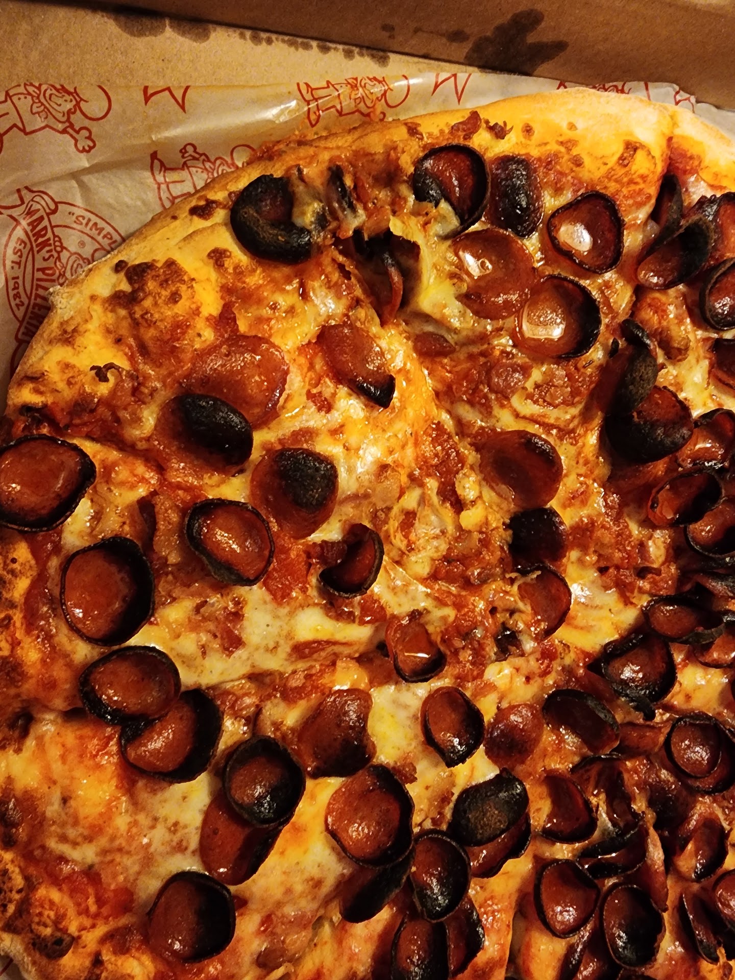 Read moreBeen ordering from them a while now, I usually pick the pizza up my self, it's usually very good. Today we decided to have it delivered, let's just say that the pizza we ordered wasn't like the others we usually order. So 1, either the store made a mistake, which is understandable or 2, they didn't make a mistake and thats kinda scary that what we ordered didn't arrive like we usually get. My suggestion to the store is put a sticker on the pizza box like other restaurants do for the protection of their customer, the delivery guy and the store, because if the store made a mistake, than the delivery guy might get blamed for something he didn't do, or vice versa.... I wont be ordering delivery ever again since the store told me they didnt make a mistake..... this was supposed to be a triple(3) cup char pizza, one half don't...