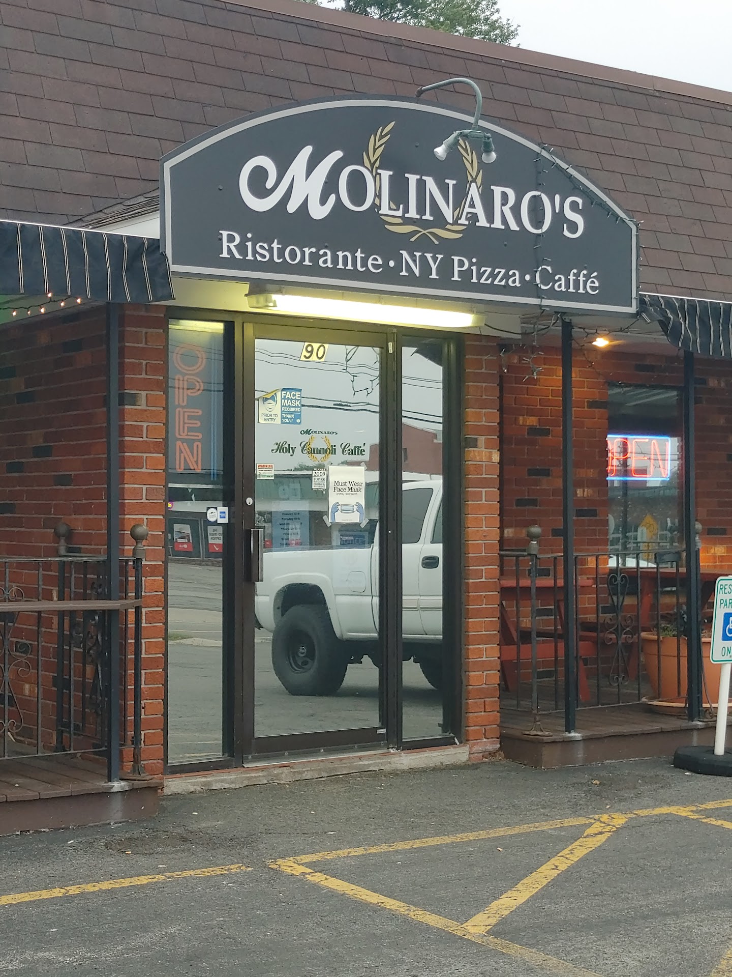Read moreHitting the road and kicking off vacation last night with a quick dinner at Molinaro's, in Lockport. It was our first visit, but won't be our last. There is a stuffed hot pepper roll, which was a delicious blend of sausage and cheeses, stuffed in a pepper, rolled in pizza dough, and deep fried. My only regret here was that I had to share. Cajun chicken sub, served on a garlic toasted roll. Lots of juicy big chunks of chicken, plenty of cheese, mushrooms, onions, and added by request, spinach. This sandwich was seriously huge, full of stuff, and outrageously tasty, and a 12" sub was plenty to share. I seriously will never order a grilled chicken sub of any kind, because I find it's often a bland dry little piece of breast that I don't want, but not the case here. Lots of subs I want to try, and for what it's worth, the signature subs are offered with steak, sausage, or chicken. I'm thinking maybe sausage in the grass next. Violet had onion rings and spaghetti and meatballs. Not much to say about the o rings. Frozen ready to fry onion rings, but cooked right and a huge portion, again, plenty to pass around. She likes her pasta plain, as you can see, but the sauce was tasty, and the meatball looked good and homemade, although I was too stuffed for a taste. Although we were stuffed, huge dessert cases were too hard to resist, so we got takeout for the hotel. Chocolate cake with chocolate frosting, and a filling like chocolate mousse was perfect, and the tiramisu was sublime. The tiramisu was velvety, and light, the lady fingers had just enough texture left, and the chocolate on top was just a bit of bitter. And the filling, not too sweet, but perfect blend of espresso and sugar. Speaking of too sweet, the Napoleon was the only thing that we didn't absolutely love. These are usually a favorite, but this one was too sweet for me. I love a good custard or pastry cream, but this one was more reminiscent of a white cream donut filling to me. I do know a lot of folks that would love this dessert, and the pastry was crunchy, and the icing done right, but overall, it wasn't for me. It's ok though, because there is plenty more that I want to try. Service was fun and friendly. Our servers gave us great recommendations and were super welcoming when we told them it was our first visit. Pastas came highly recommended too, so they're on the list to try soon also, and slices of NY style pizza in the case looked pretty good too. If you need a quick and reasonable stop for lunch or dinner in Lockport, be sure to check out Molinaro's , and then...
