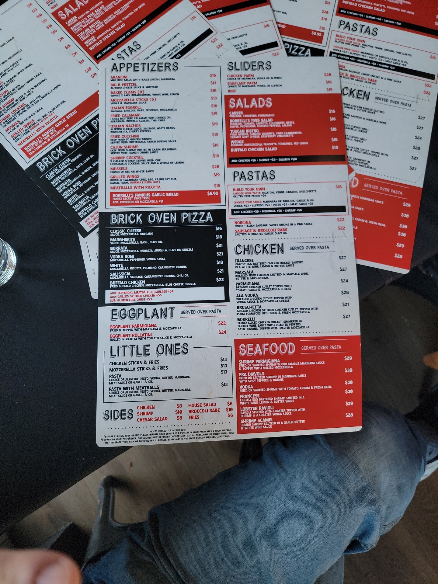 Came here for the Vinny guadino comedy show. $100 for a ticket to be squished like a sardine for 2 hours. We were so uncomfortable- this set up was not thought out. Poor servers couldn’t even get through but they made it work. Skinnny margarita not drinkable. Margarita pizza was actually really good. Borellis salad was an absolute nightmare and to charge close to $20 for a drenched salad with what tasted like Ken’s or Wishbone is alarming. We took 1 bite each and immediately no. We didn’t touch the rest, the server cleared it without even asking. Riceballs and fries another 2 nightmares from the menu. Frozen riceballs, peas were still frozen inside. $100 later with a 20% auto grat for 2 ppl (lol I would have tipped more). As a LB local, borellis should really do better and offer better quality food and drinks for the prices...