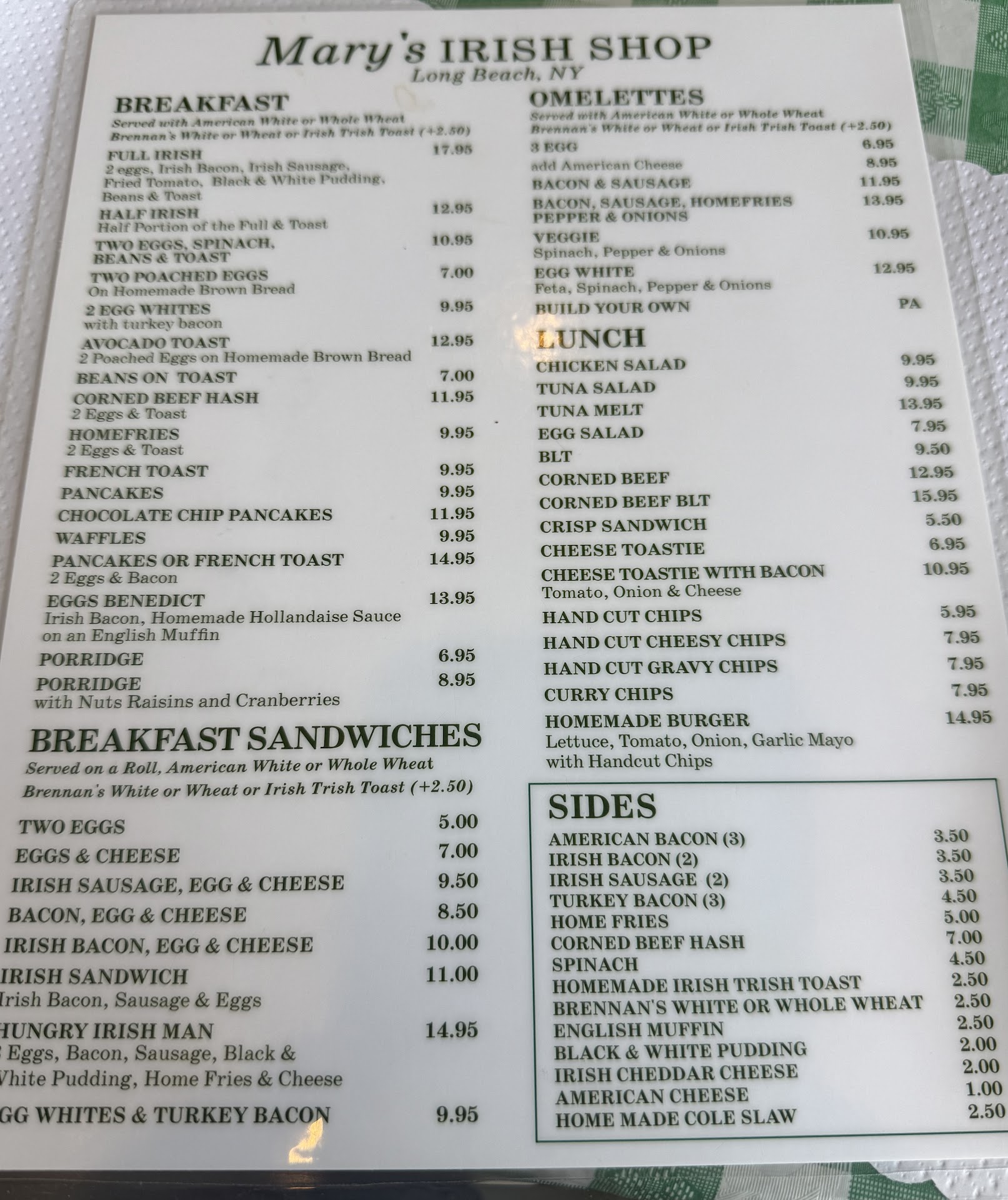 Love this establishment. Reminds me of my visits to ennis, true irish atmosphere. A go to whenever I've family and friends visiting from other 🇺🇸 states and around the globe looking for a true irish breakfast. From the time you walk through the door you receive such a warm welcome, it's doesn't matter if your a local from around the corner or stopping in from another location. Mary and her team are lovely. The food is fabulous, tasty and my god the full irish with black and white pudding and real bacon and eggs is amazingly tasty. The chef is brilliant. A must go to this side of the bronx for a really authentic irish experience..the heart of the irish is felt here....thank you Mary for a tranquil fun experience including the great selection of irish/ English treats like custard creams,Ribena, Barry's tea,hobby knobs and digestive biscuit and more for sale to take home a devour..LOVE...