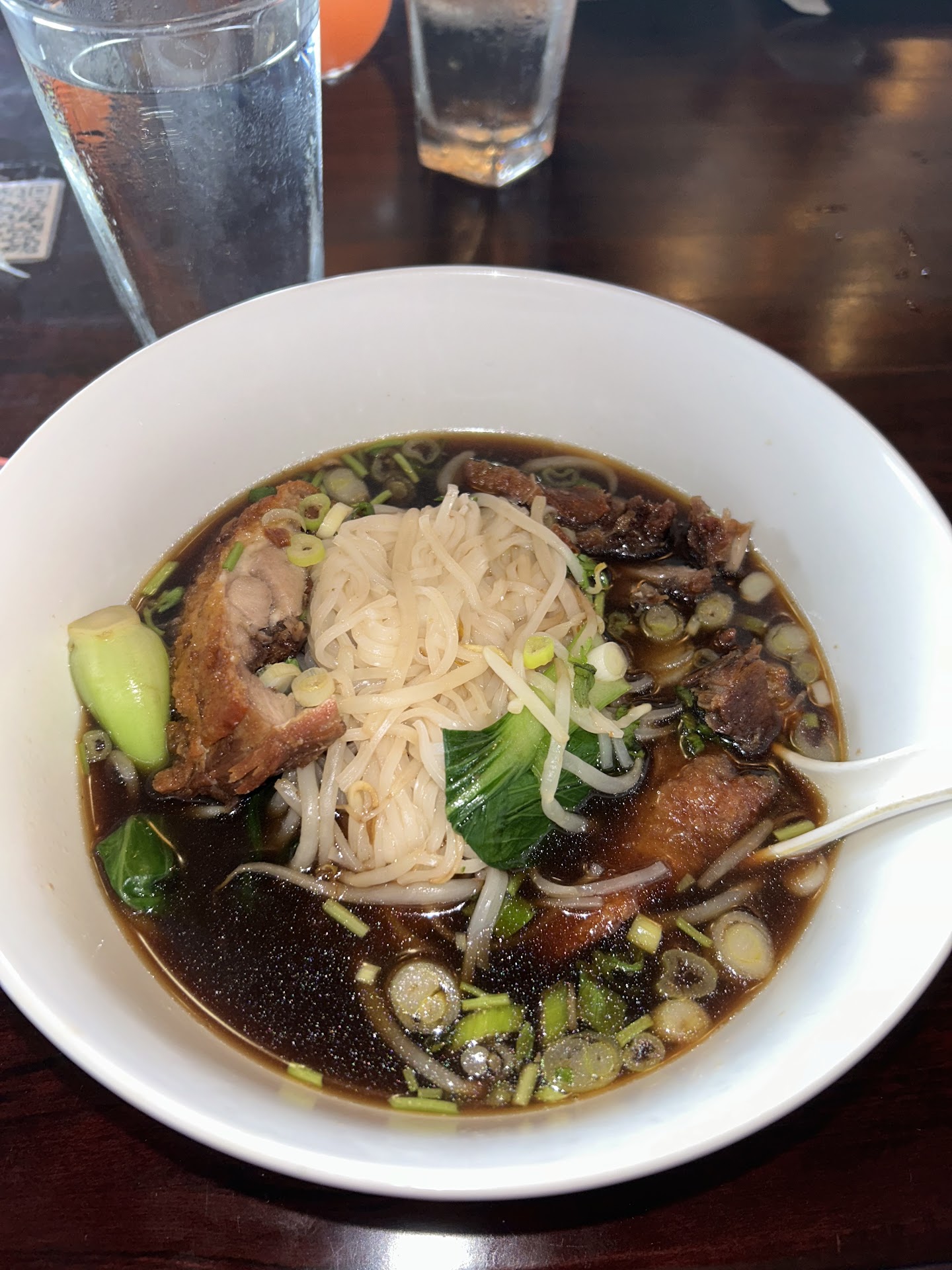 I ordered the duck noodle soup and I was blown away. The fact that I was starving may had a little bit to do with that, but it really was so tasty! I ate here about a week ago and I still keep reminiscing on how much I enjoyed that soup. The broth was so flavorful and the duck was perfect in my opinion; crispy yet tender. My friends enjoyed their meals as well: pineapple fried rice, chicken pad see ew, steamed veggie dumplings, and beef pad Thai. We were also obsessed with the chili sauce, poured it over all our dishes. Ambiance was chill, casual, but with some decor. Staff was kind. I’d come back if in the area! Parking is difficult but that’s expected on a Friday night. Order the duck noodle...